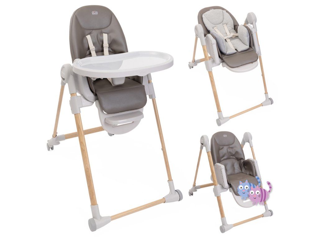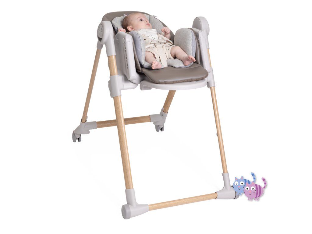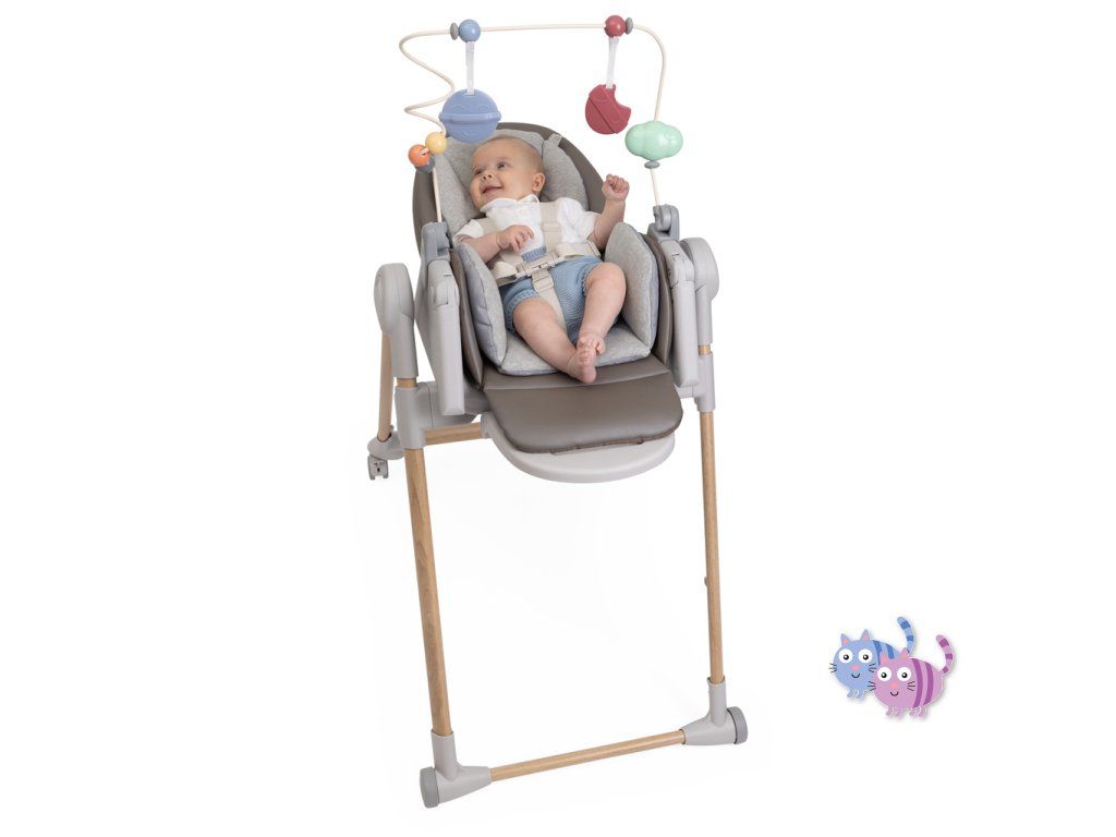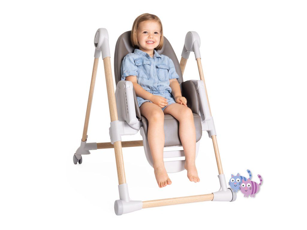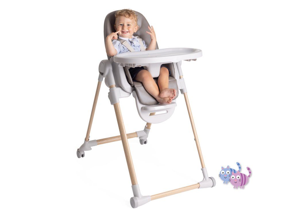Jídelní židle lze výškově nastavit do 9 různých pozic a přizpůsobí se tak výšce, kterou aktuálně potřebujete. Má 4 kolečka, díky kterým umíte židli prakticky přesouvat. Opěrka zad lze nastavit do úplného lehu. Opěrka nožiček je rovněž nastavitelná pro naprostý komfort dítěte.