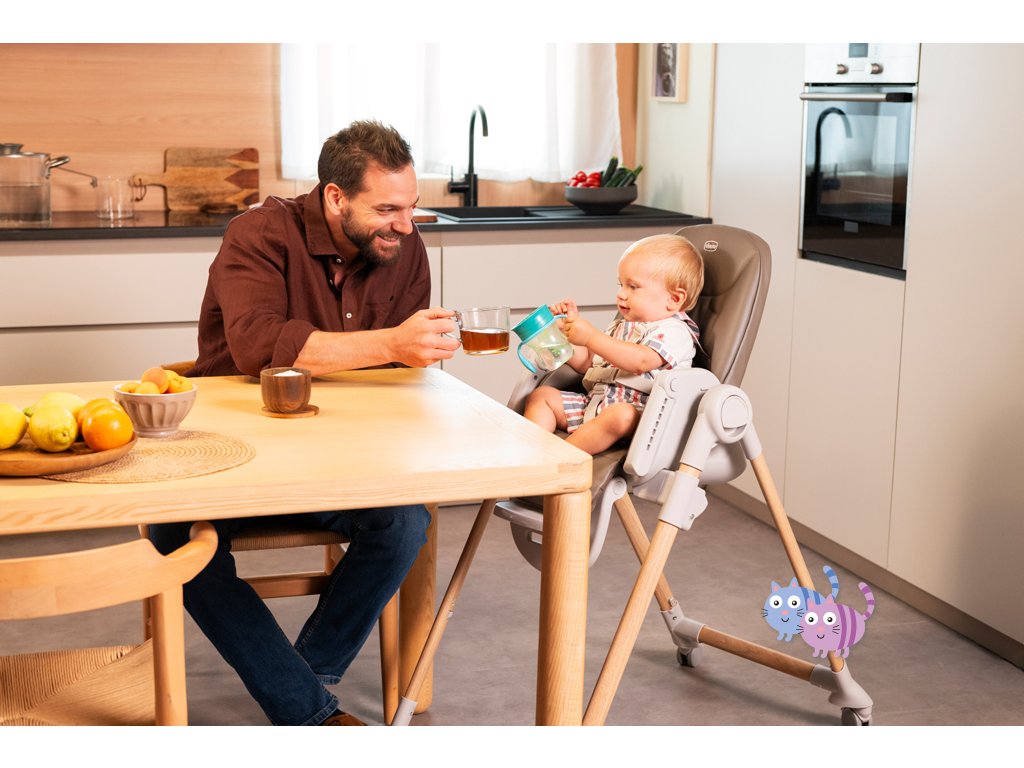 - od 3 let až do 40 kg lze židli nastavit do pozice, ve které dítě může stolovat u jídelního stolu. Stačí odebrat tác, židli nastavit do potřebné výšky a přisunout ke stolu.