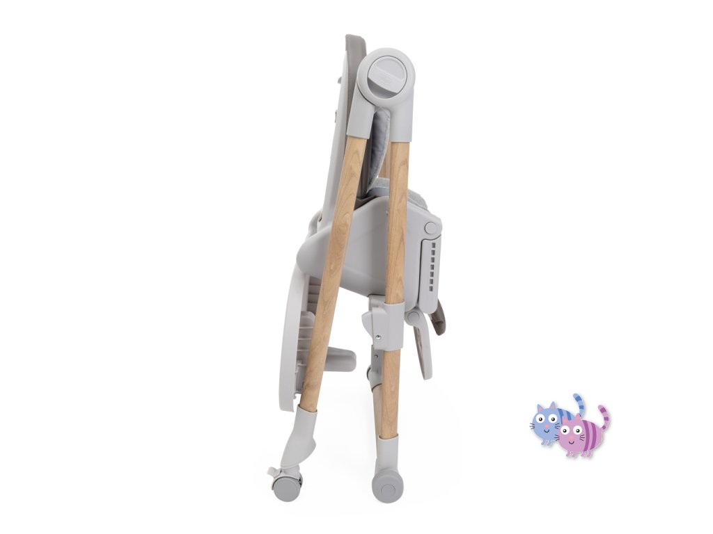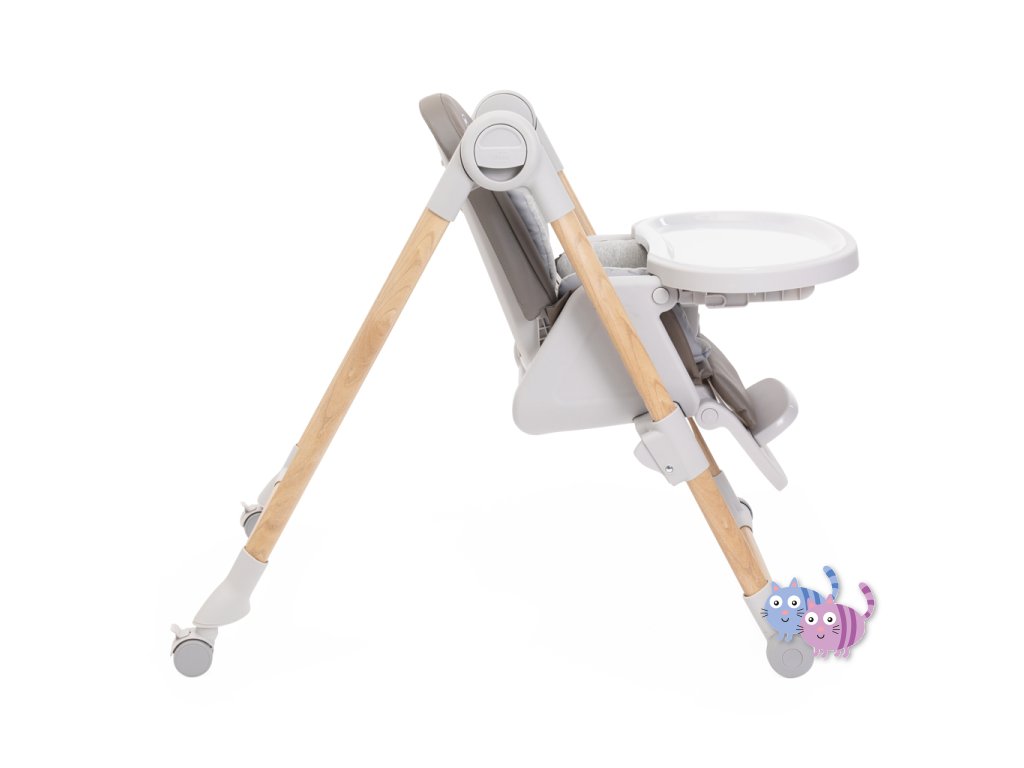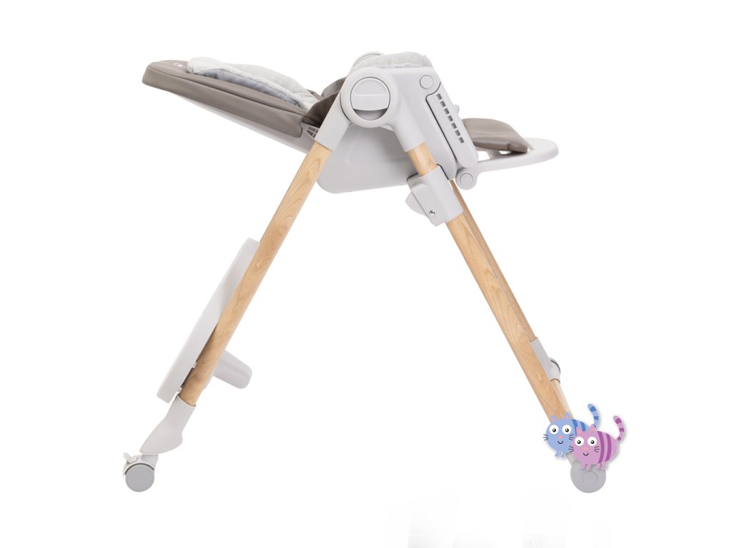 Jídelní židle lze výškově nastavit do 9 různých pozic a přizpůsobí se tak výšce, kterou aktuálně potřebujete. Má 4 kolečka díky kterým umíte židli prakticky přesouvat. Opěrka zad lze nastavit do úplného lehu. Opěrka nožiček je rovněž nastavitelná pro naprostý komfort dítěte.