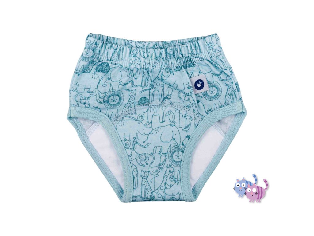 " Plenkové učící (tréninkové) kalhotky jsou určeny pro dítě, které již přechází na nočník a občas se mu přihodí nepříjemná příhoda. Nepropustná vrstva, spolu s absorpční vrstvou částečně chrání okolí před znečištěním. Můžete je dát dítěti jako dárek. Pomůže to zesílení jeho pocitu, že je již velké, a že brzy nebude plenky potřebovat. Na rozdíl od plenek se učící kalhotky oblékají a svlékají místo přebalování a vaše dítě se může cítit stejně jako velký chlapec nebo dívka."