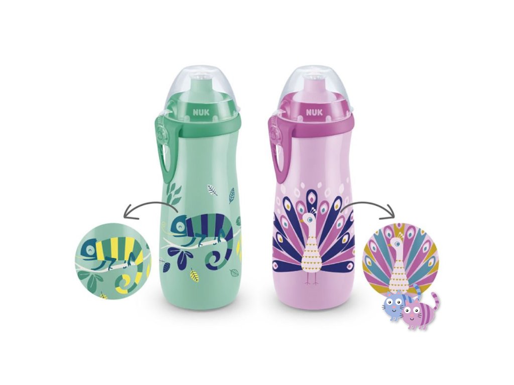Dětská láhev NUK Sports Cup Chameleon. Kouzelná lahvička je ideální pro aktivní děti na sport a hry, ze které nevyteče ani kapka. Má pítko push-pull, vytáhnout a zatlačit. Přes pítko se dá uzavřít praktické víčko, aby zůstalo pítko čisté. Lahvička je extra lehká, vyrobena z pevného a nerozbitného polypropylenu bez obsahu BPA. Vhodná pro děti od 3 let, ideální i pro malé školáky. Klinicky testováno. Charakteristika:
