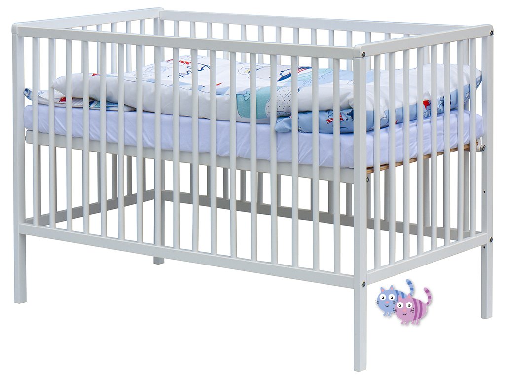 1. Dětská dřevěná postýlka 120x60 cm - bílá, masiv buk, 3 vyndavací příčky, 3 polohy roštu
