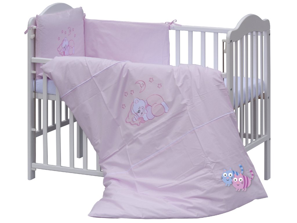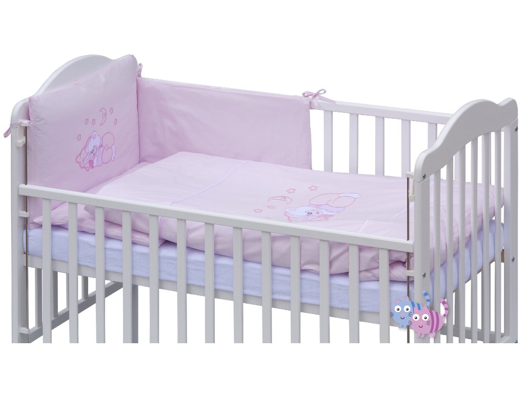 Dětská postýlka s kompletní výbavou Scarlett 120 x 60 cm - Měsíček - růžová