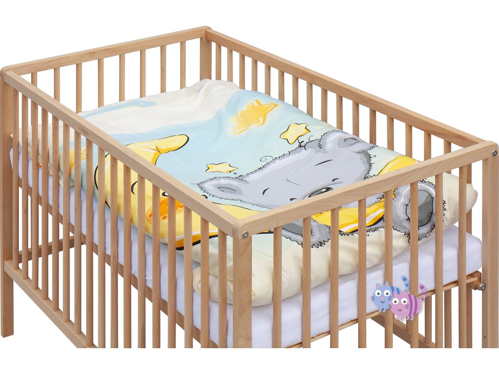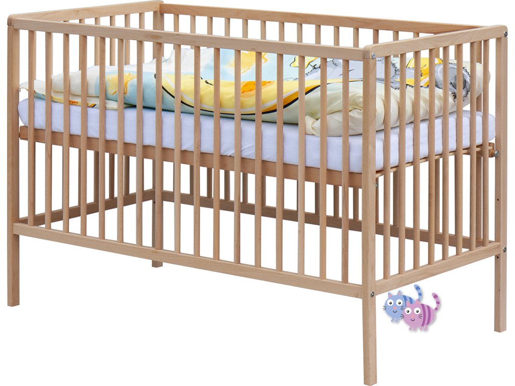 1. Dětská dřevěná postýlka 120 x 60 cm - přírodní, masiv borovice, 3 vyndavací příčky, 3 polohy roštu,