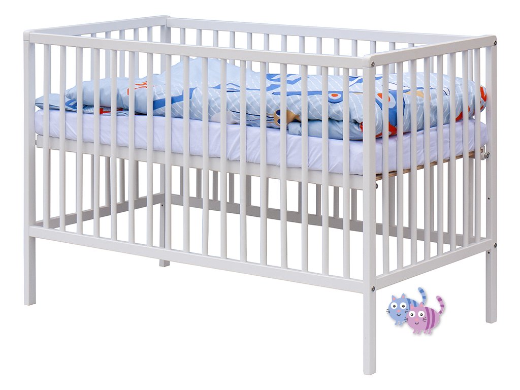 1. Dětská dřevěná postýlka 120x60 cm - bílá, masiv buk, 3 vyndavací příčky, 3 polohy roštu