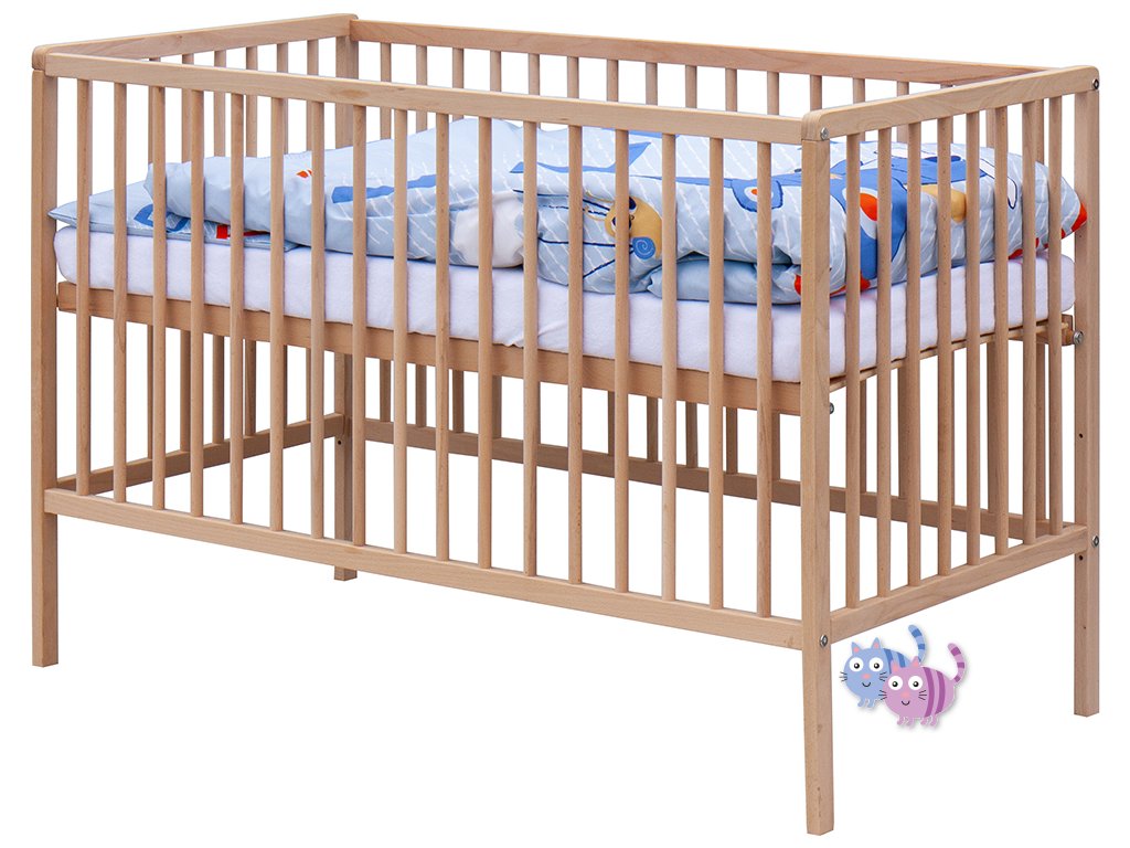 1. Dětská dřevěná postýlka 120 x 60 cm - přírodní, masiv borovice, 3 vyndavací příčky, 3 polohy roštu,