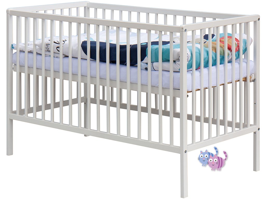 1. Dětská dřevěná postýlka 120x60 cm - bílá, masiv buk, 3 vyndavací příčky, 3 polohy roštu