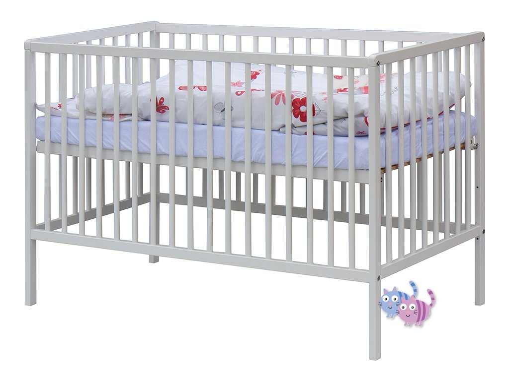 1. Dětská dřevěná postýlka 120x60 cm - bílá, masiv buk, 3 vyndavací příčky, 3 polohy roštu
