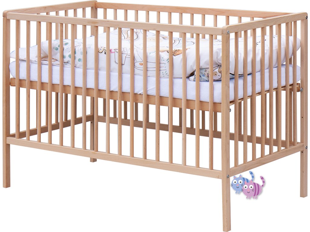 1. Dětská dřevěná postýlka 120 x 60 cm - přírodní, masiv borovice, 3 vyndavací příčky, 3 polohy roštu,
