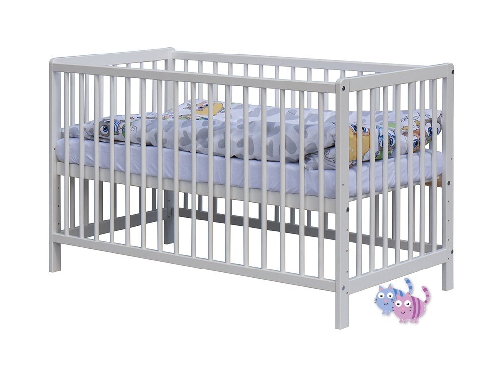 1. Dětská dřevěná postýlka 120x60 cm - bílá, masiv borovice, 3 vyndavací příčky, 5 poloh roštu