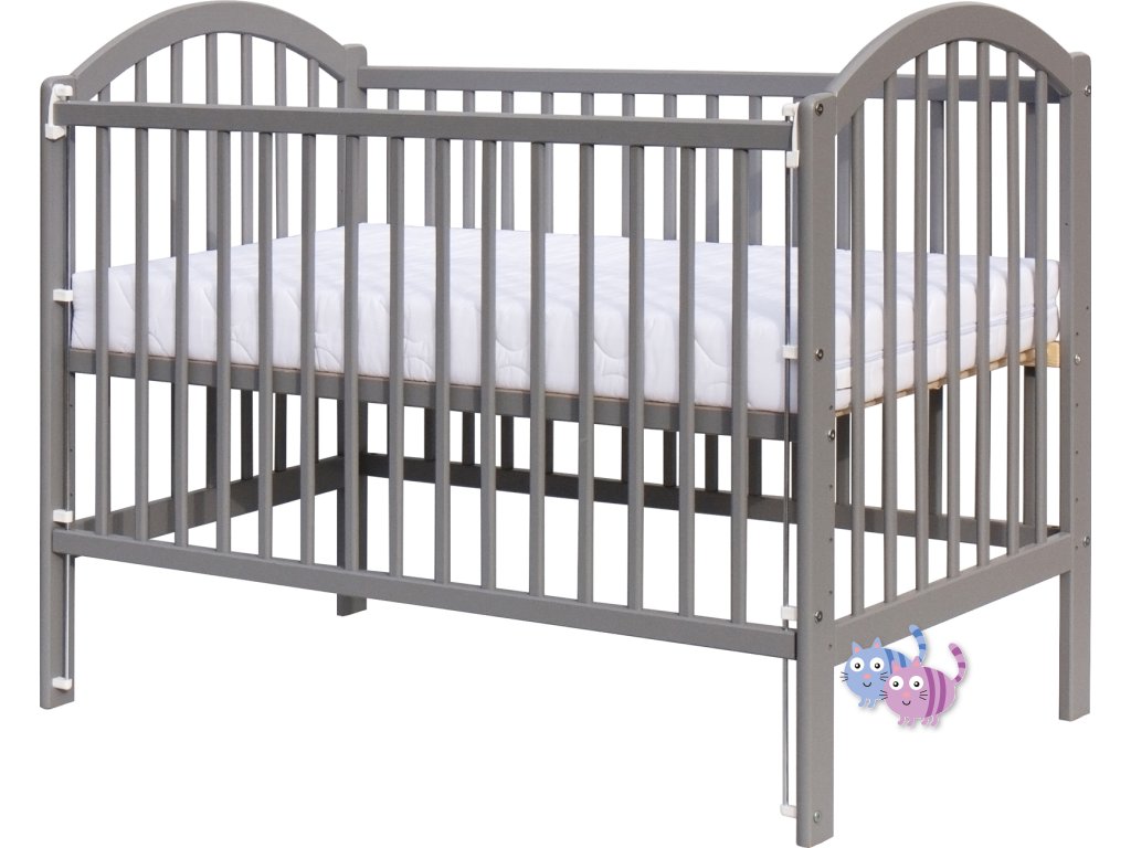 Dětská postýlka Scarlett Alenka - šedá (borovice) - stahovací bočnice - 120 x 60 cm