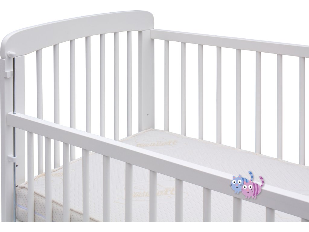 Dětská postýlka Scarlett MÍŠA - bílá (buk) - stahovací bočnice - 120 x 60 cm