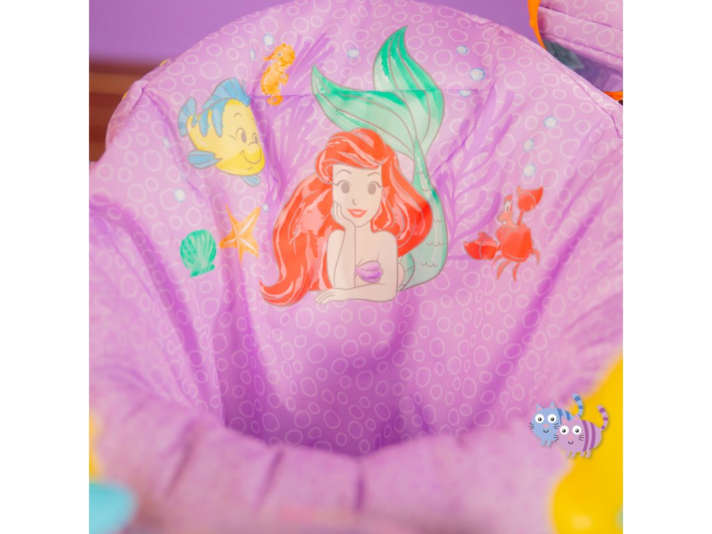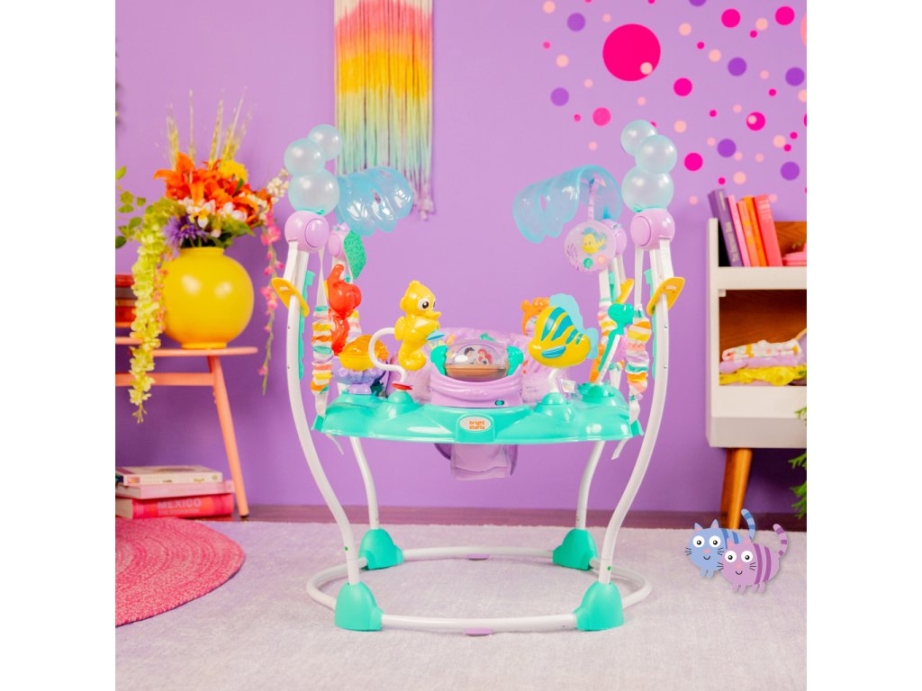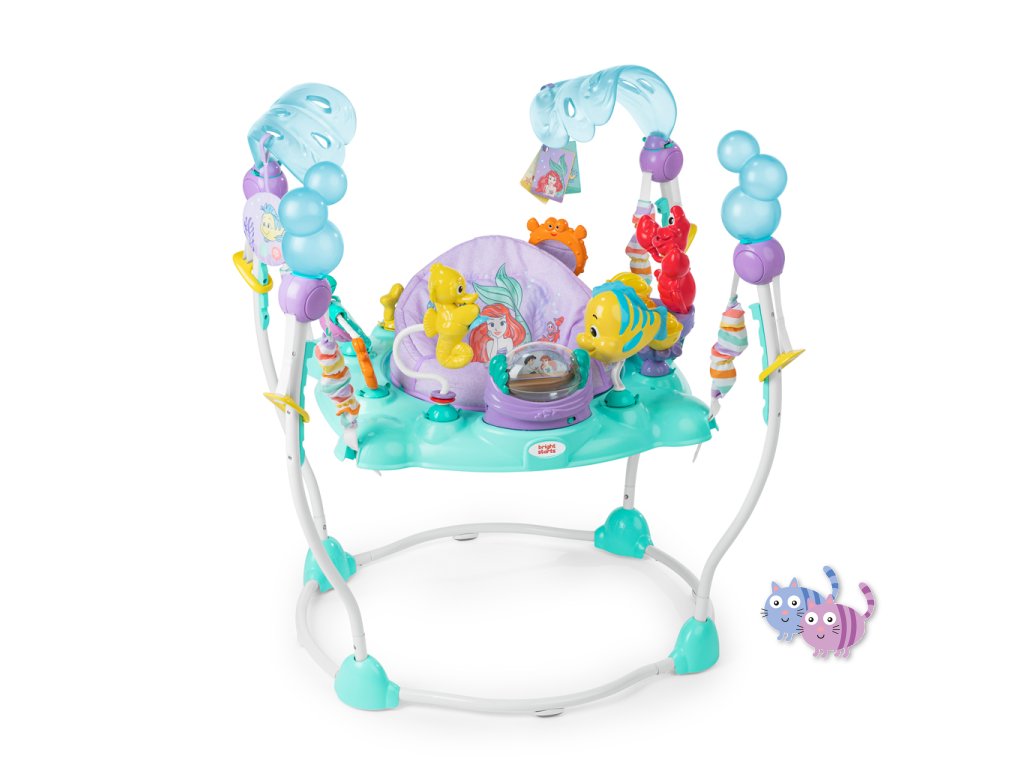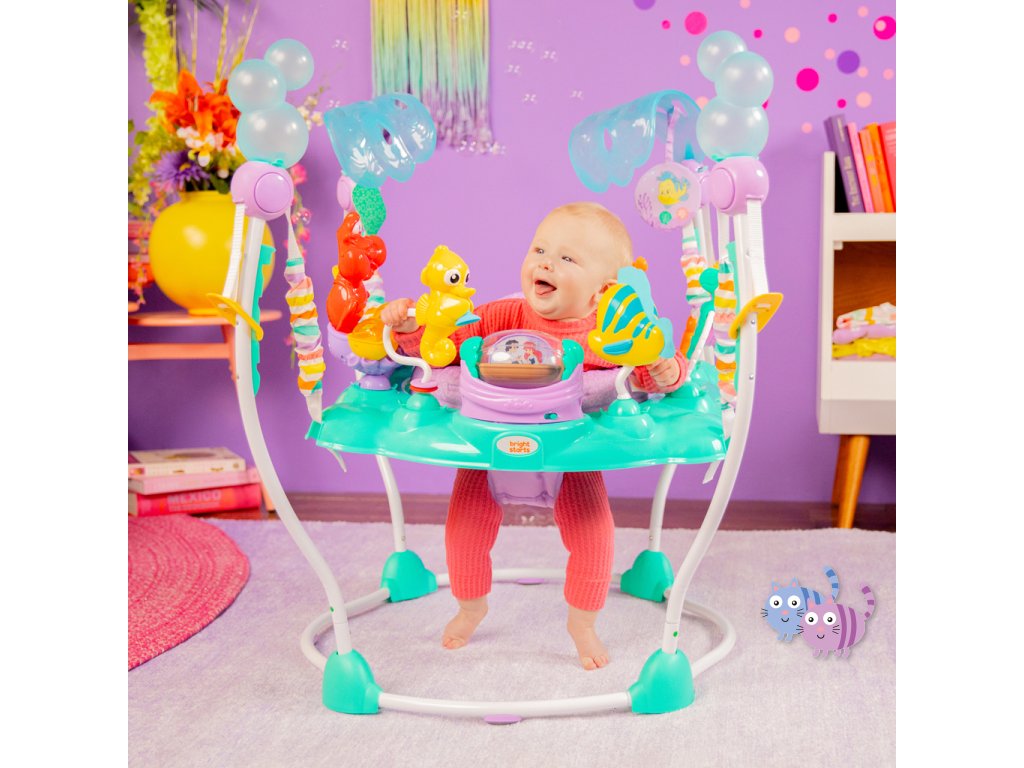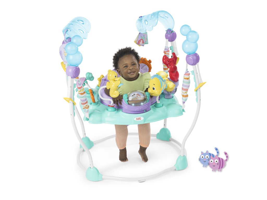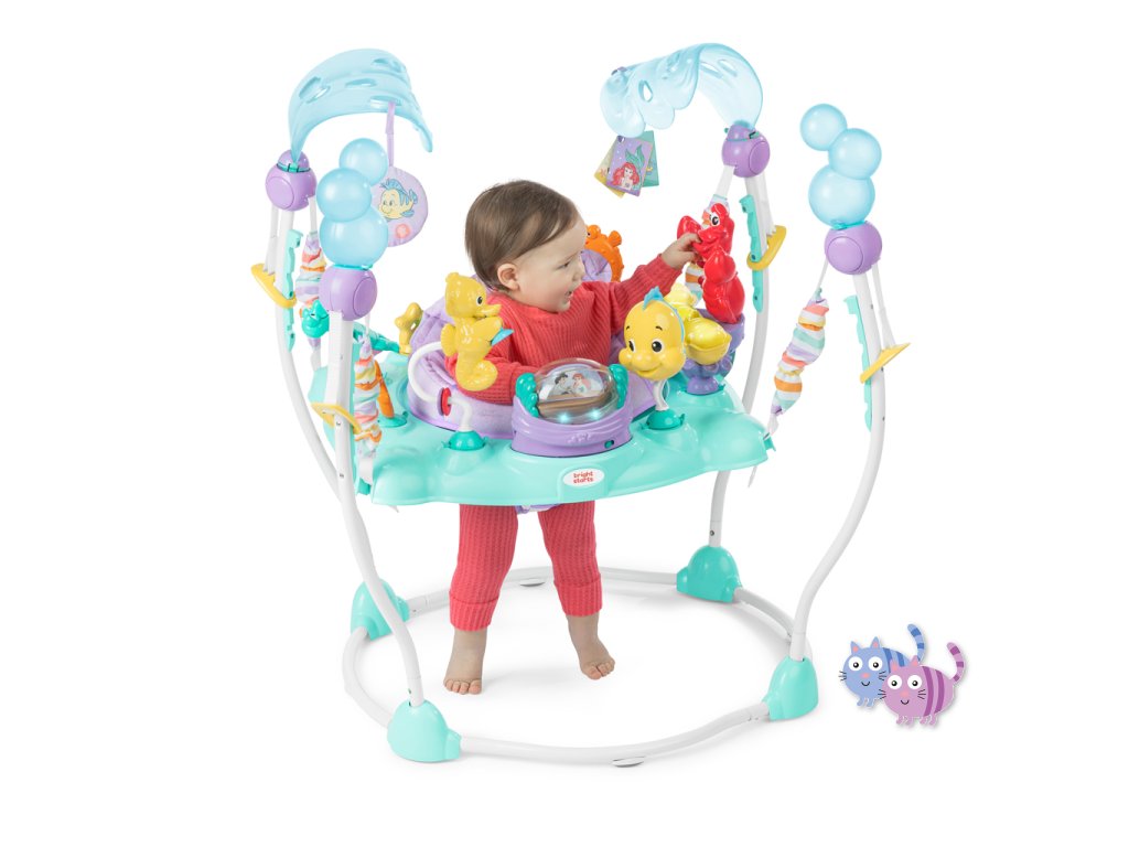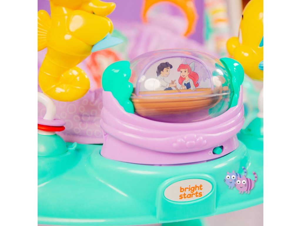 Skočte pod mořskou hladinu a objevte hlubiny s tímto úžasným dětským skákadlem Disney Princezna Ariel! Vaše dítě si užije více než 10 hraček a aktivit, včetně Sebastiana a Floundera. Skákáním aktivuje světla a zvuky, které ho odmění a pomohou mu pochopit vztah příčiny a následku. Otočné sedadlo umožňuje přístup ke všem hračkám a výškově nastavitelný rám roste s dítětem. Snadno se čistí a je bezpečné pro děti od 6 do 12 měsíců nebo do 11 kg.
