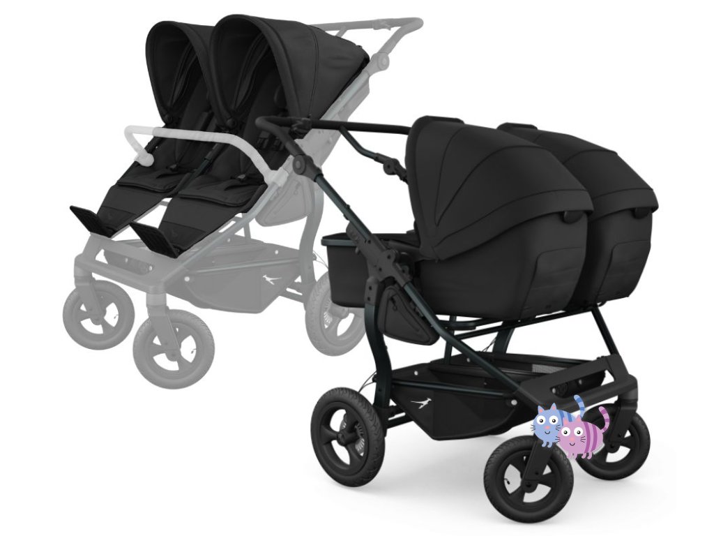 Hluboká korba duo2 combi je nyní prostornější, delší, lépe ovladatelná. Je použitelná od narození, snadno pak dále nastavitelná na sportovní sezení, lze ji používat od 0 do 36 měsíců. Korba duo2 combi může být použita v obou směrech jízdy a může být prodloužena ve sportovní verzi o opěrku pro nohy.