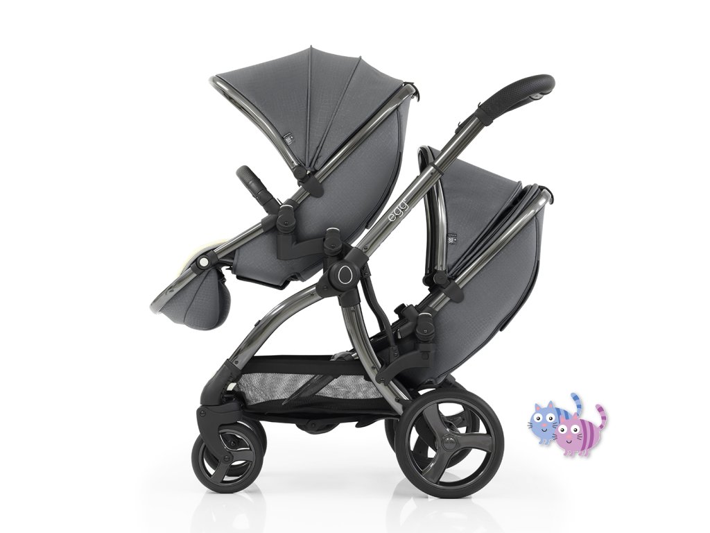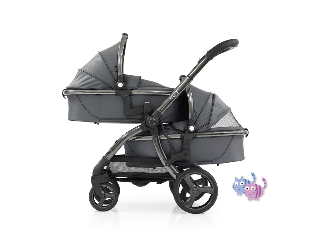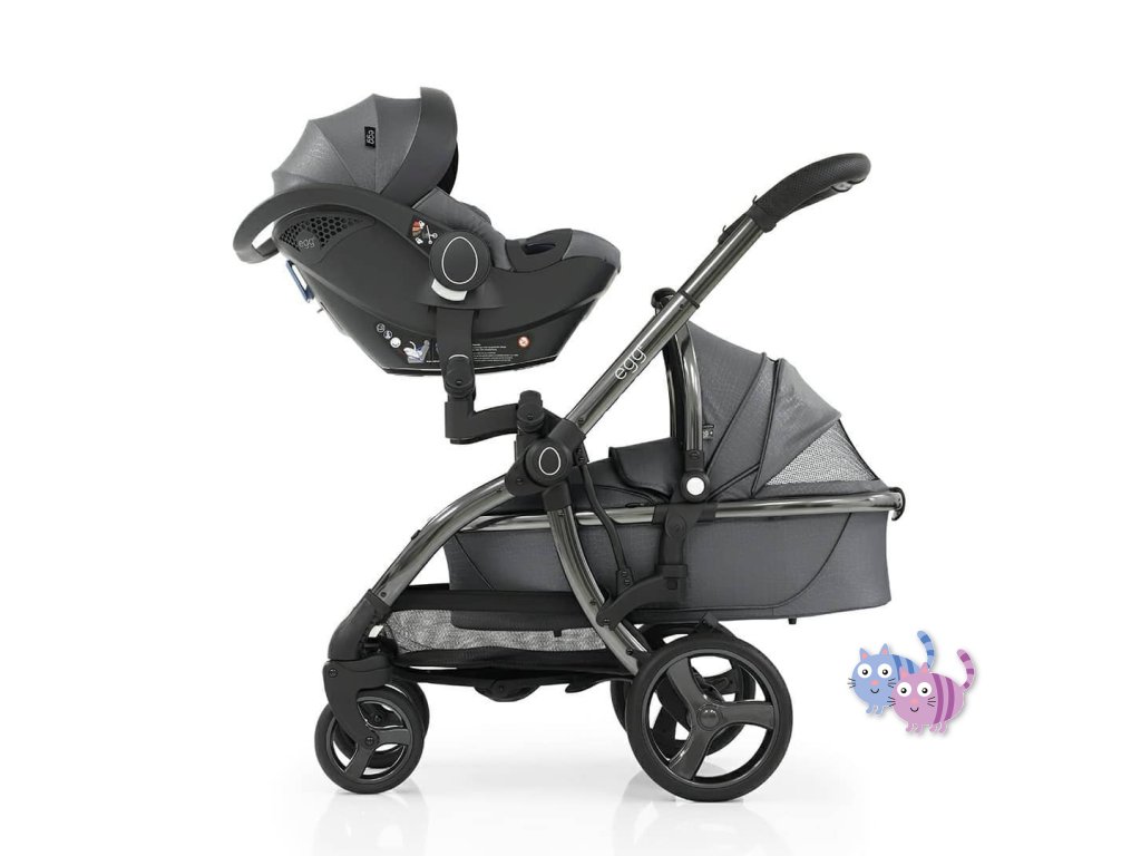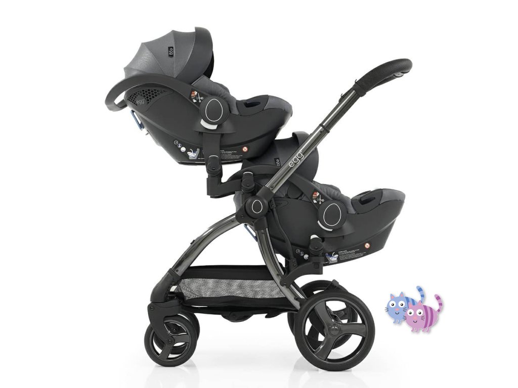 S možností přidání hlubokého dílu (dokupuje se zvlášť) lze kočárek používat od narození. Pro snadný přechod z auta na podvozek slouží kompatibilní dětská autosedačka egg® a multi-adaptéry, které umožňují připojení bez nutnosti probudit dítě. Pro rostoucí rodiny nebo dvojčata lze kočárek přeměnit na sourozenecký nebo dvojčatový pomocí tandemových adaptérů. Dále je k dispozici přídavný skate egg® Ride-on-Board pro starší děti a košík egg® Pet Basket pro chlupaté mazlíčky nebo nákupy.