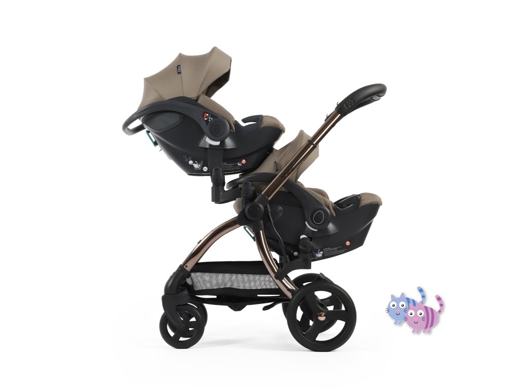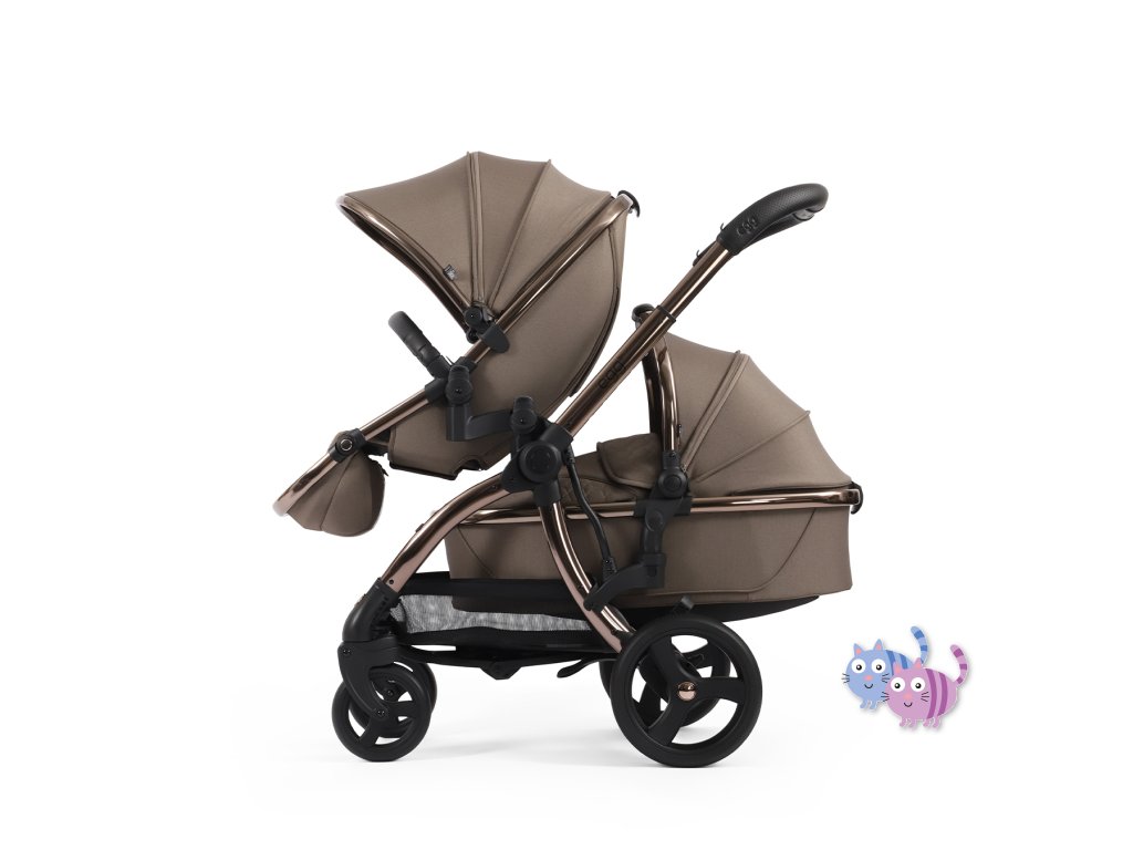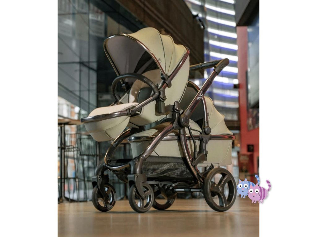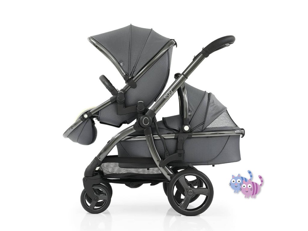 S možností přidání hlubokého dílu (dokupuje se zvlášť) lze kočárek používat od narození. Pro snadný přechod z auta na podvozek slouží kompatibilní dětská autosedačka egg® a multi-adaptéry, které umožňují připojení bez nutnosti probudit dítě. Pro rostoucí rodiny nebo dvojčata lze kočárek přeměnit na sourozenecký nebo dvojčatový pomocí tandemových adaptérů. Dále je k dispozici přídavný skate egg® Ride-on-Board pro starší děti a košík egg® Pet Basket pro chlupaté mazlíčky nebo nákupy.