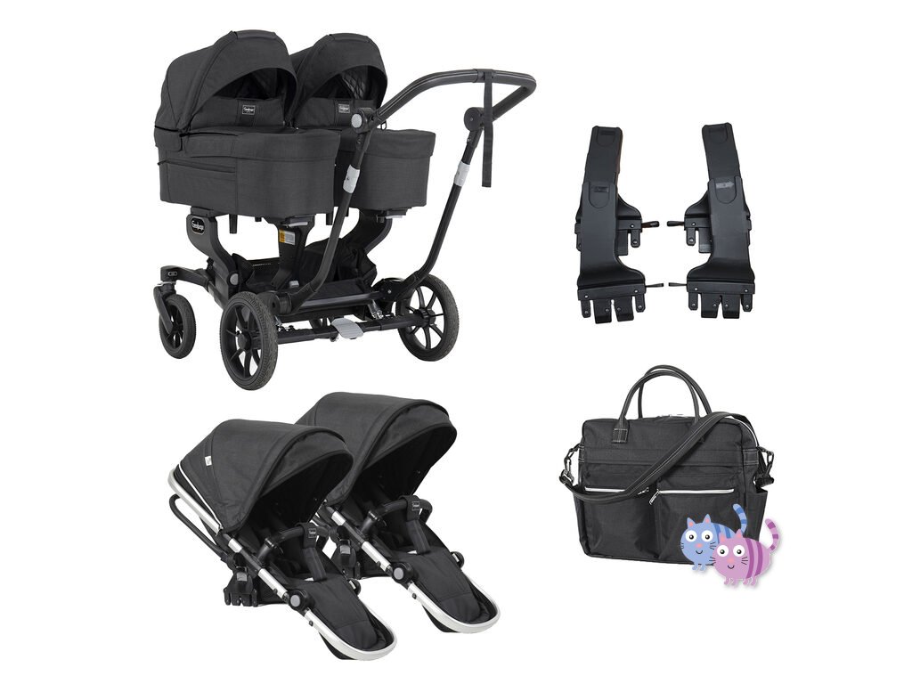 Set obsahuje: konstrukci NXT TWIN, 2x hlubokou korbu NXT Carrycot, 2x sportovní sezení NXT Seat Unit ERGO, 1x adaptéry a 1x Changing bag
