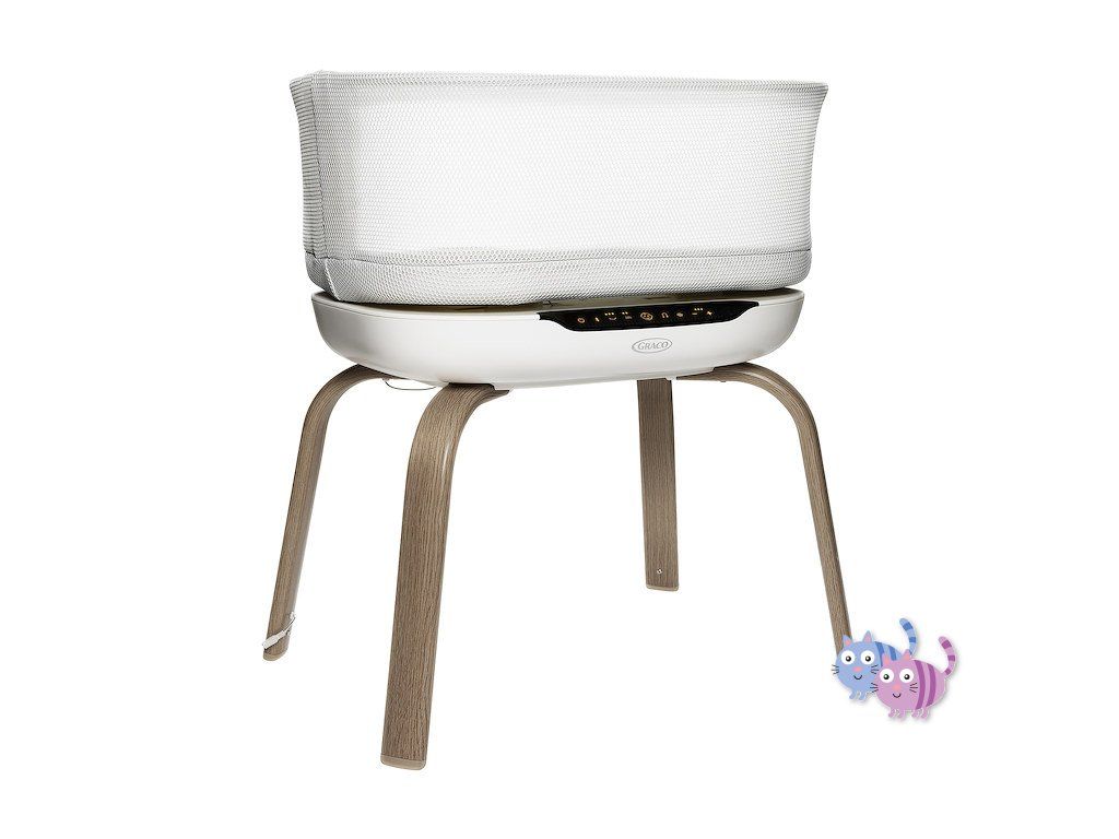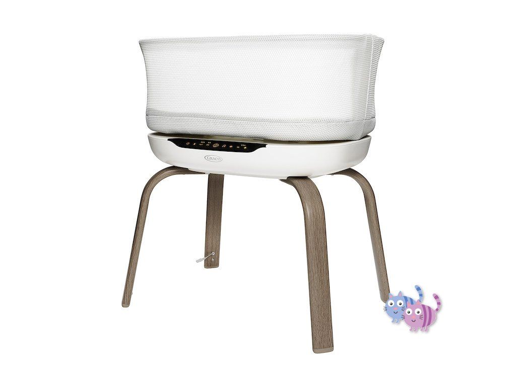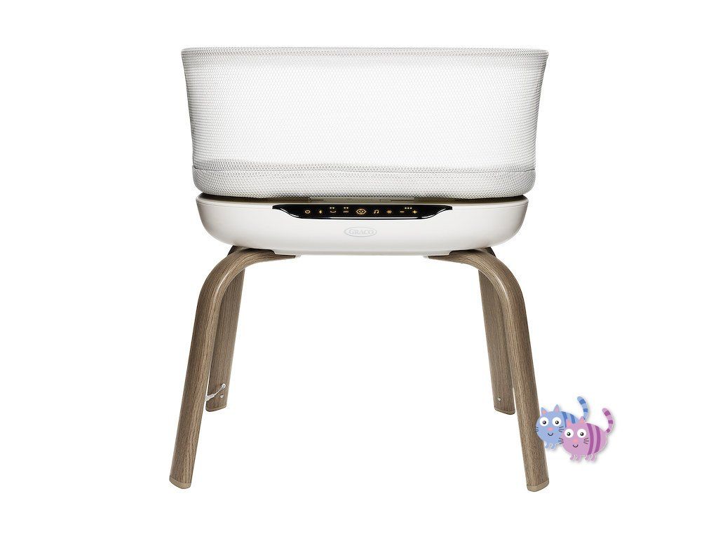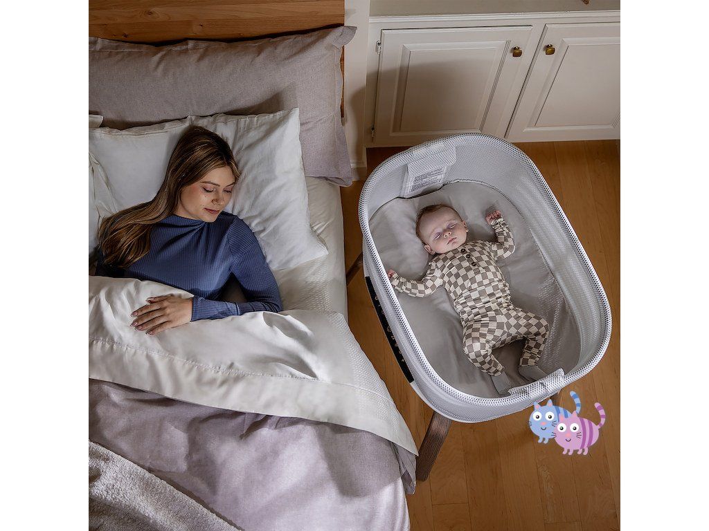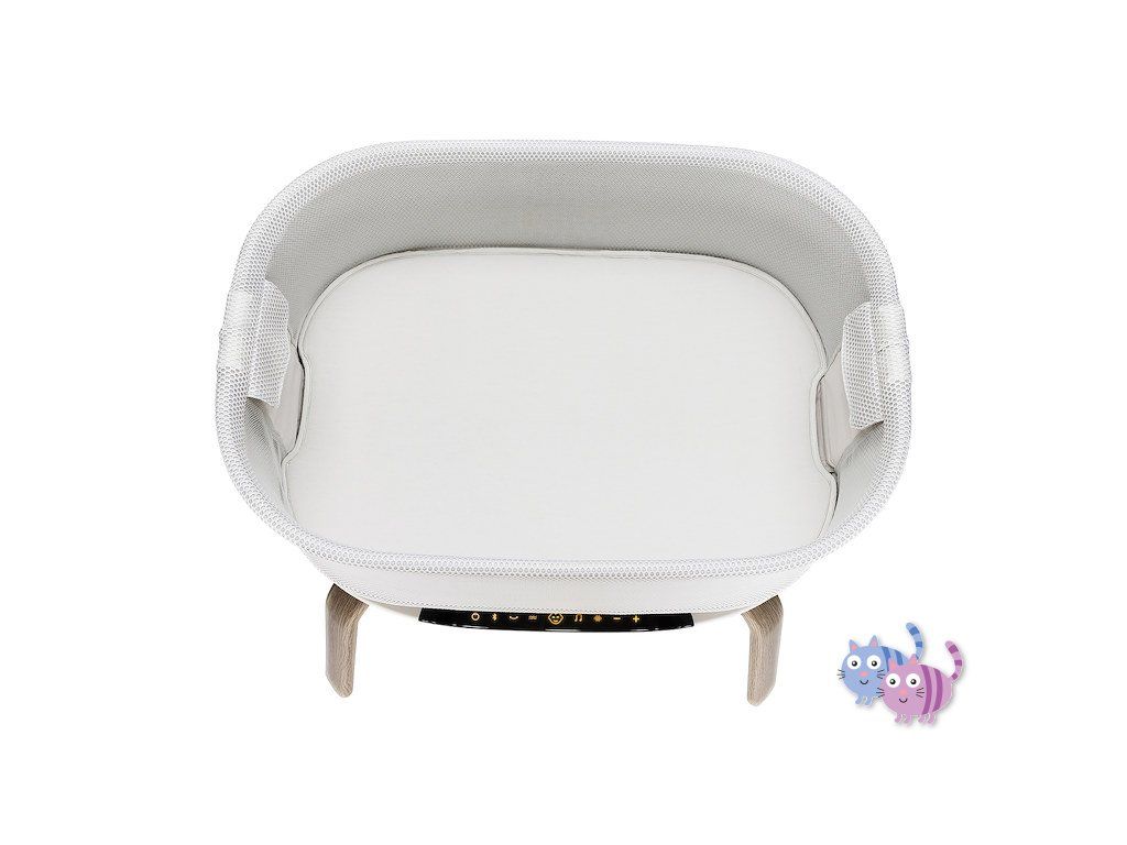 převratně chytrá postýlka, nabitá funkcemi včetně unikátní technologie Cry Detection Technology, která sama rozpozná pláč dítěte a okamžitě spustí uklidňující funkce pro rychlejší návrat ke spánku.