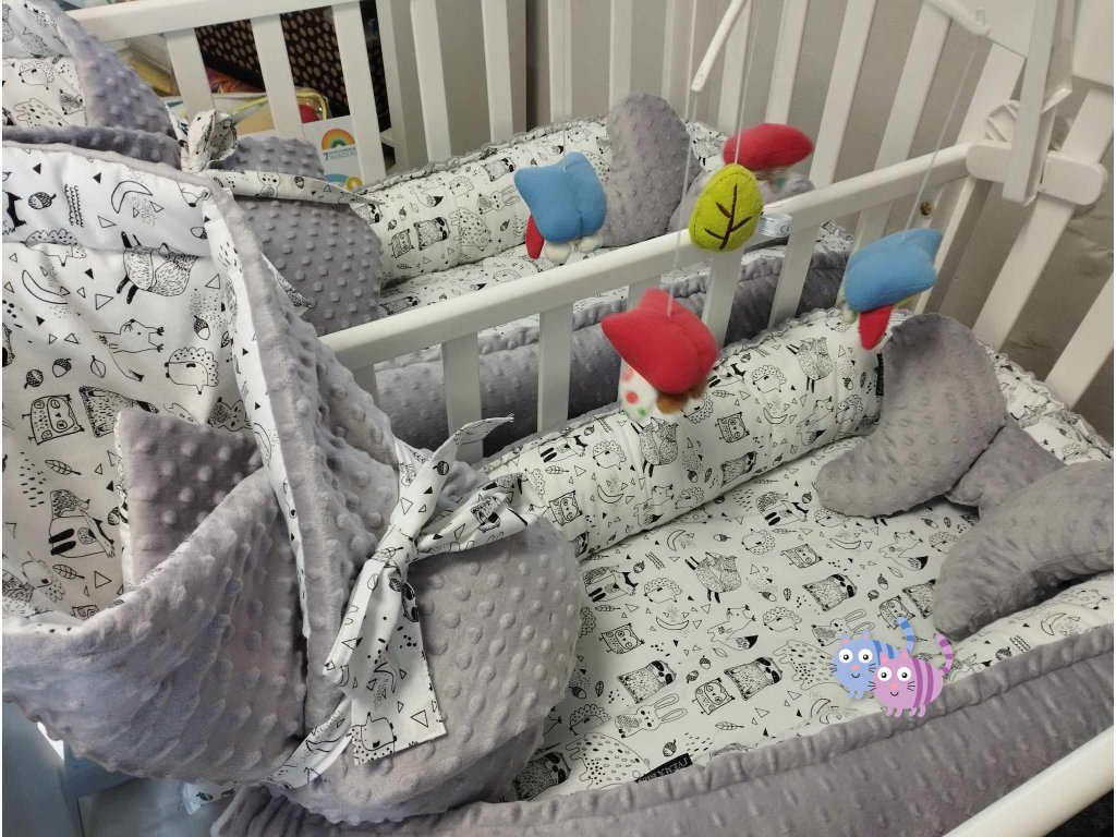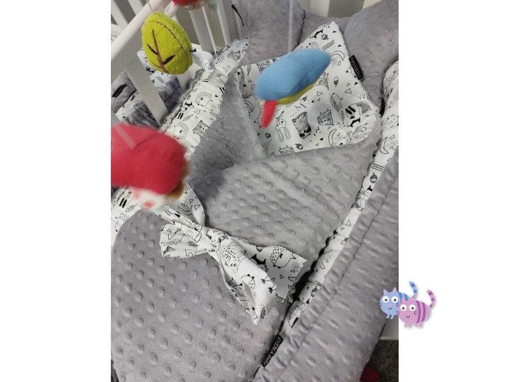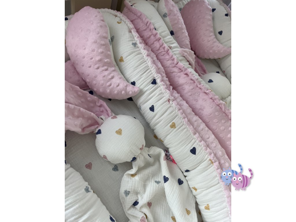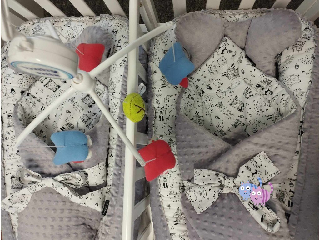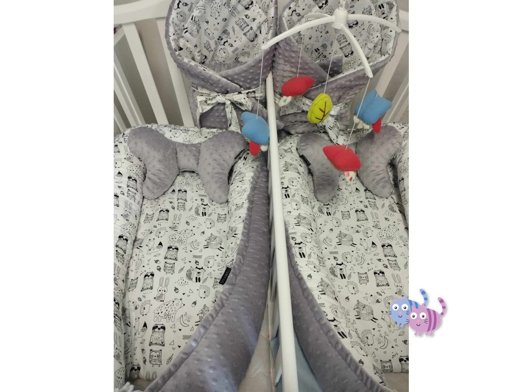 - oboustranná hnízdečka - velká hnízda, která se dají zmenšit na společné spaní v jedné postýlce, jsou oboustranná, kombinaci materiálů si vyberete