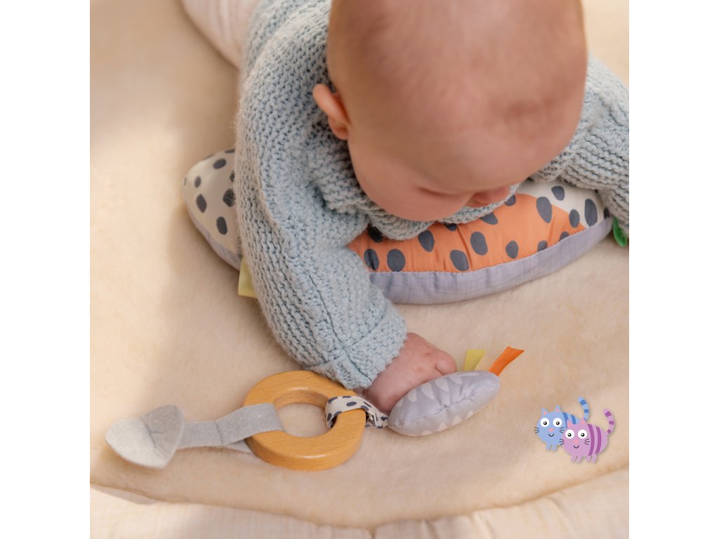 Oboustranný prémiový moderní vzor doplňuje jakoukoli domácnost. Hračky a materiály použité při výrobě deky byly vybrány speciálně pro první rok života děťátka, aby mu co nejvíce pomohly se zrakovým a hmatovým rozvojem.