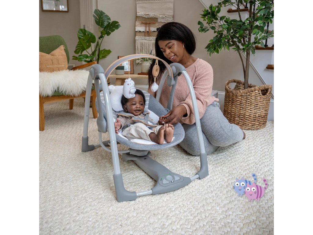 Díky technologii snímání hmotnosti se rychlost houpání automaticky přizpůsobuje rostoucí hmotnosti děťátka. Neutrální design je vhodný pro dívky i chlapce a houpačka je skvělým tipem na dárek k narození miminka.