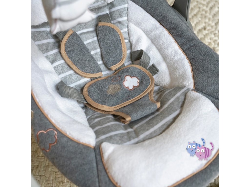 Houpačka v designu Bella Teddy je vyrobena z prémiových luxusních tkanin, které jsou mimořádně měkké a pohodlné, ale zároveň praktické. Jemné materiály hýčkají miminko, přičemž dodatečná výztuž a opěrka hlavy poskytují podporu menším dětem, které jednoduše odstraníte, když miminko vyroste. I 5-bodový bezpečnostní pás je obalen jemnou měkkou tkaninou, aby chránil citlivou dětskou pokožku.