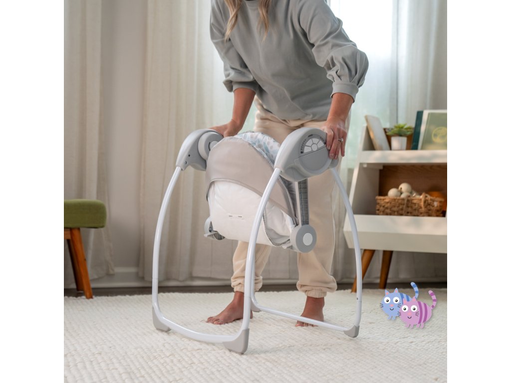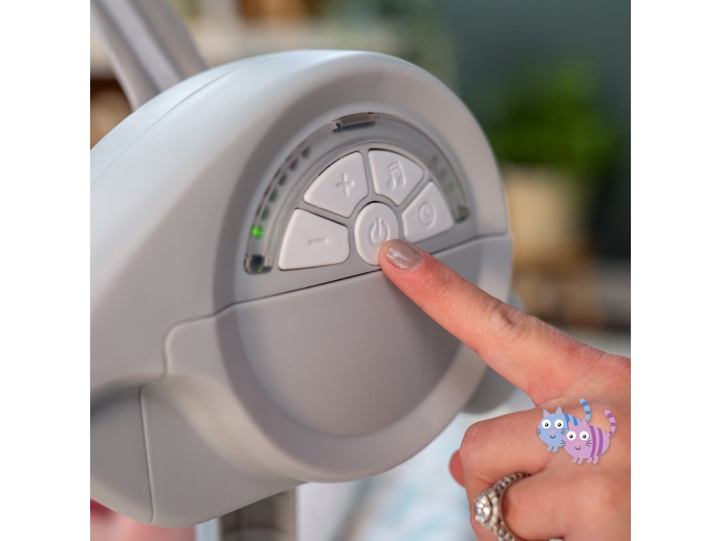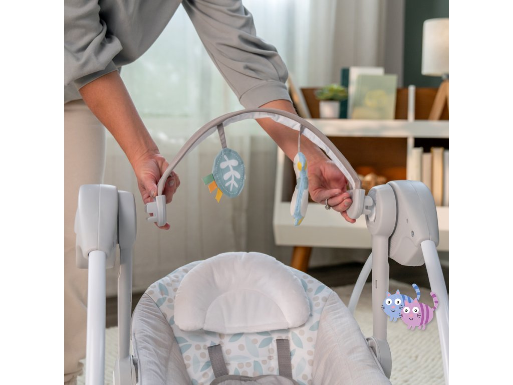 Chvilka klidu pro miminko znamená klid pro všechny doma. Cestovní konvertibilní houpačka s melodií Endless Blooms™ je přenosná houpačka navržená tak, aby děťátko uklidnila a zabavila – ať jste kdekoli. Umožní vám chvilku odpočinku, zatímco si miminko užívá jemné houpání, hudbu a hračky. Tato houpačka je ideálním řešením pro rodiče, kteří hledají praktické, pohodlné a přenosné řešení pro zklidnění a zabavení miminka – doma i na cestách.