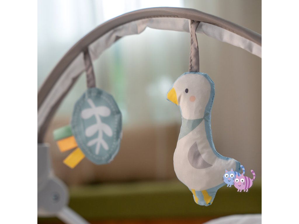 - 10 uklidňujících melodií a 2 zavěšené hračky na odnímatelné hrazdičce – vizuální a sluchová stimulace pro miminko