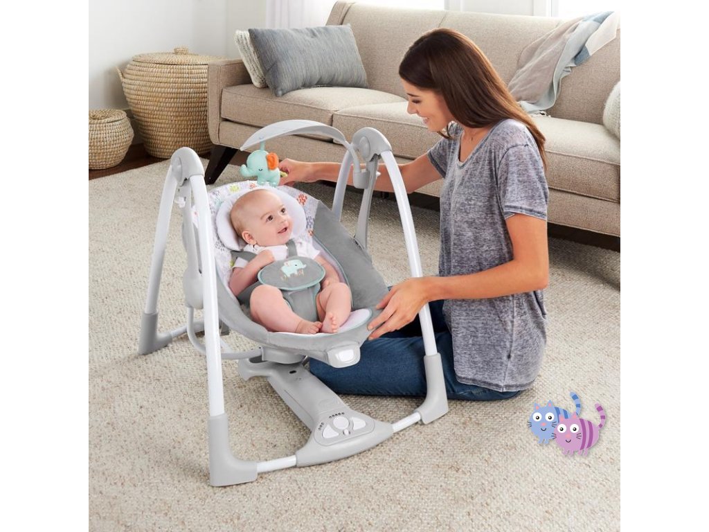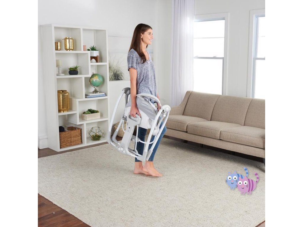 Šikovná houpačka, která umožňuje nastavení do dvou poloh! Houpačka se bez námahy promění na stacionární lehátko a Vy můžete mít během dne na pár okamžiků volné ruce. Houpačka umožňuje nastavit 5 různých rychlostí, 12 melodií a 4 přírodní zvuky. Na houpačce je upevněn polohovatelný list s plyšovým kamarádem, ale i místa pro připojení více hraček. Houpačka je ideální pro holčičky i chlapce. Houpačka se snadno skladuje a přepravuje. Časovač houpačky lze nastavit na 3 varianty: 30, 45 a 60 minut. S technologií WhisperQuiet ™ děťátko bude odpočívat spokojeně bez rušení. Houpačka je vybavena 5- bodovým pásem a protiskluzovými nožičkami pro bezpečnost a snadno se udržuje v čistotě. Neutrální design a luxusní funkce usnadní den rodičům a dopřejí odpočinek děťátku. Stejně tak si můžete vychutnat dvojité výhody technologie a baterií. Jste-li v blízkosti zásuvky, můžete použít síťový adaptér anebo přepnete houpačku do režimu baterie.