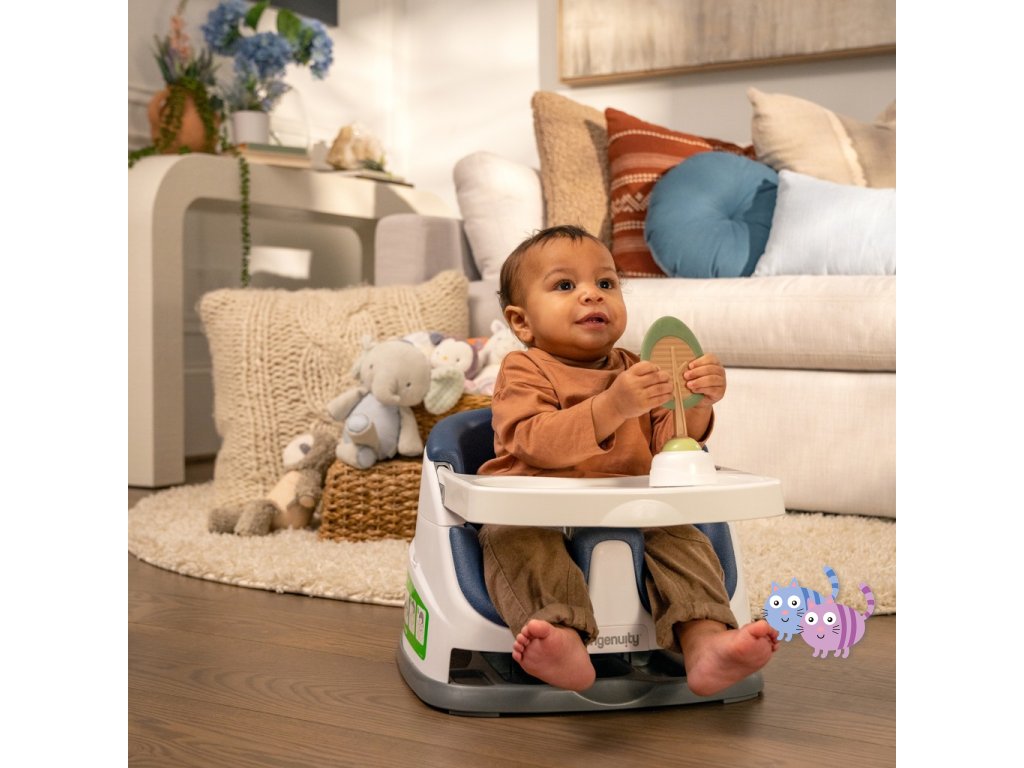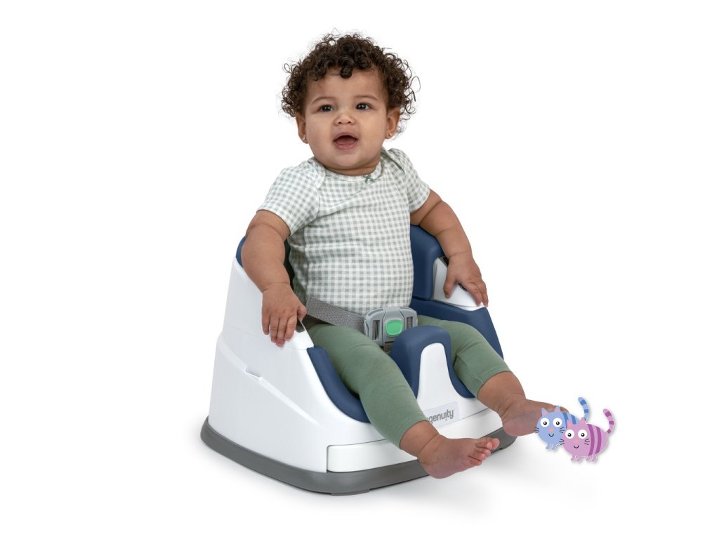 Podsedák se snadno upevňuje na jídelní židle. Funkce 2v1 Vám umožňuje použít jej jako sezení u stolu, ale také jako sedátko na podlaze během volného času. Díky odnímatelnému pultíku má děťátko vlastní stůl dokonalé velikosti, kde občerstvení i hračky jsou na dosah. Pokud se nepoužívá, pohodlně se vyklopí pod samotné sedátko. Když dítě vyroste z vysoké židle tento podsedák je přesně to, co potřebujete.