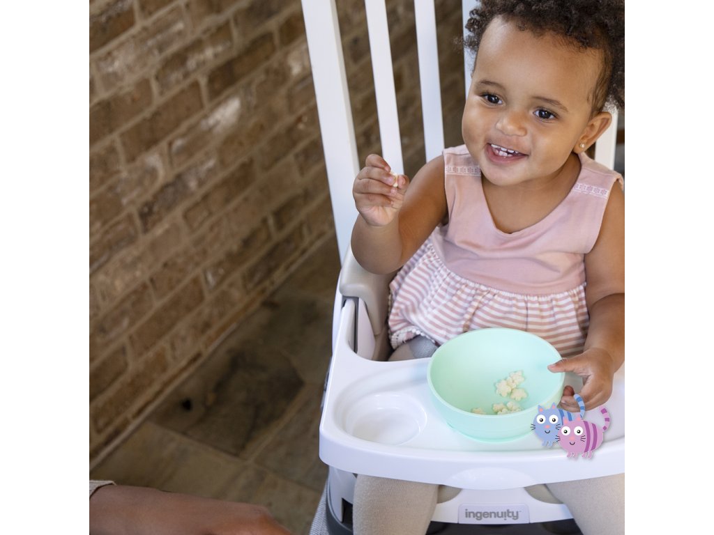 Pohodlný, snadno čistící se podsedák pomáhá dítěti stravovat se u stolu v ideální výšce. Vychutnejte si tak více smíchu a konverzace, včetně dětských rozhovorů, při společném obědě nebo večeři.