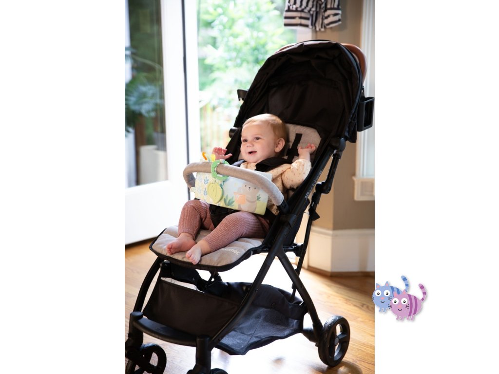 - C-kroužek, který je součástí knihy, je skvělý k připevnění na rukojeti kočárku a tašky na pleny.