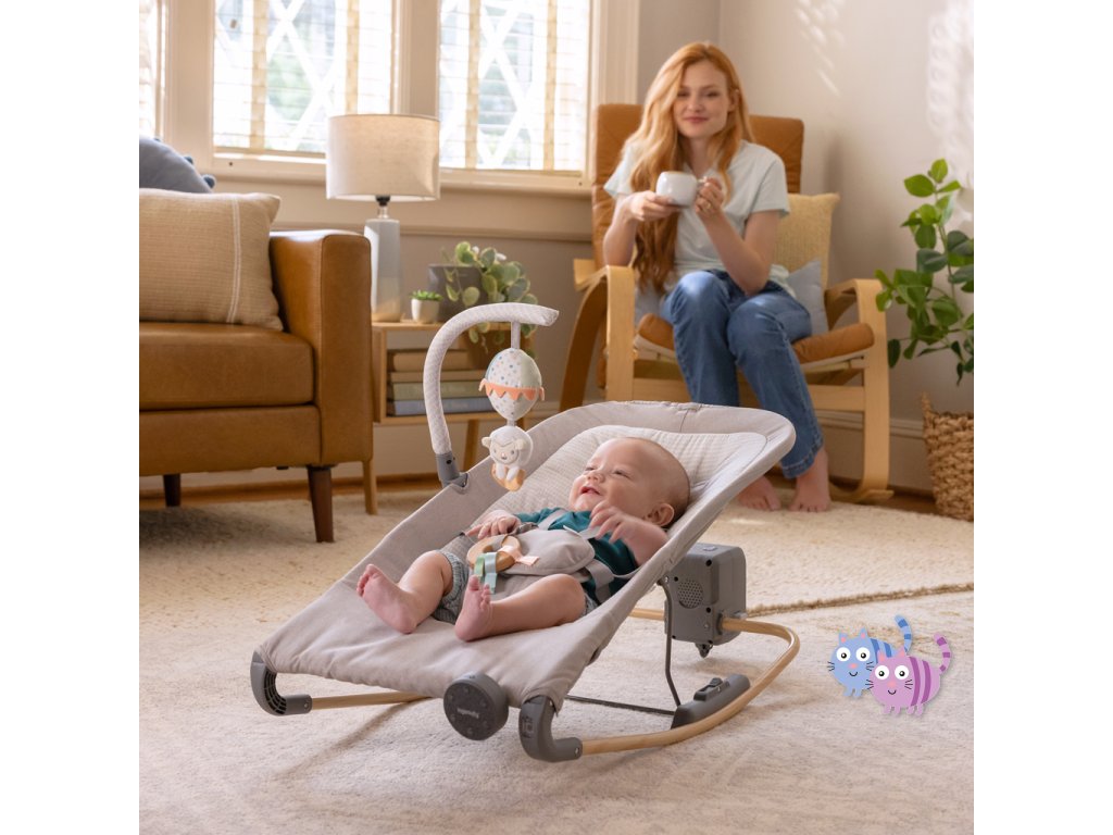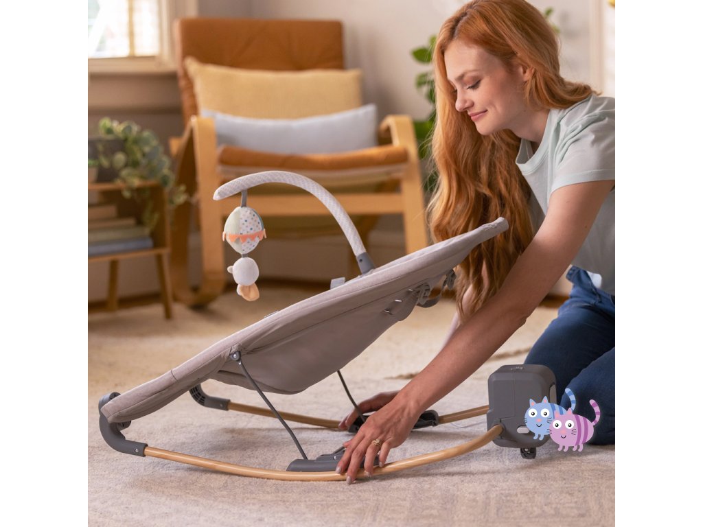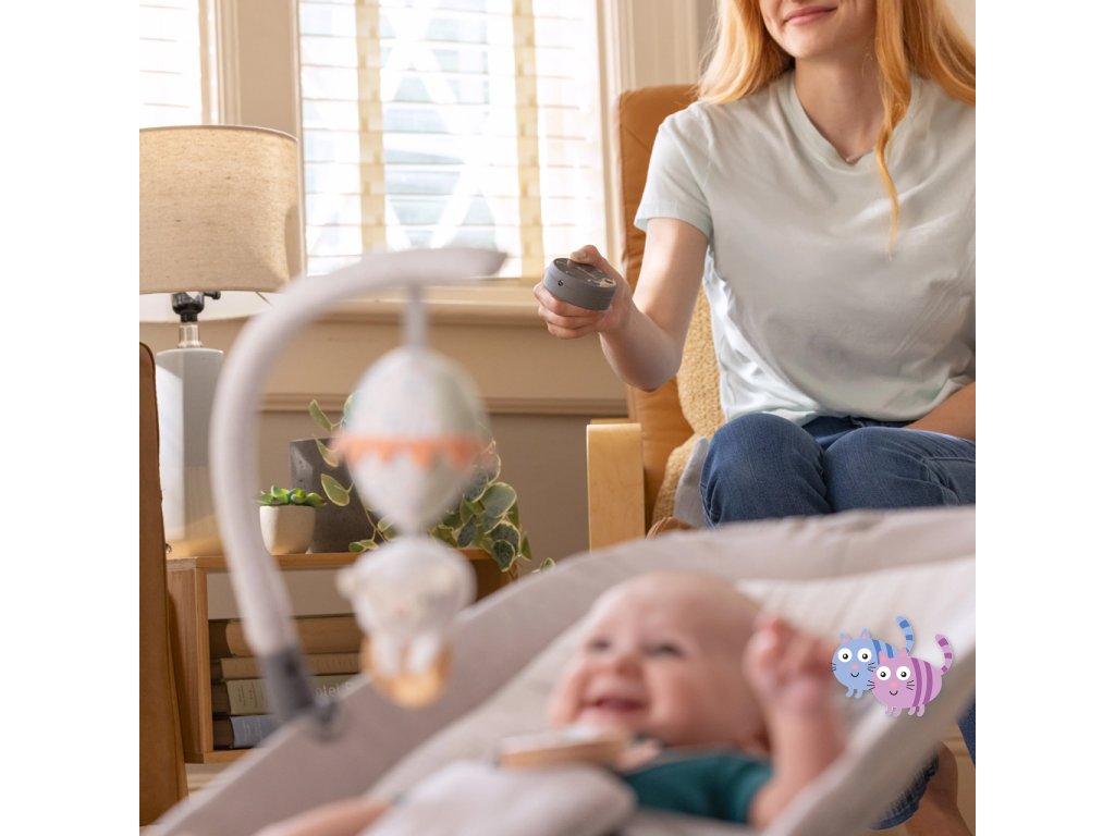 Lehátko nabízí 2 rychlosti houpání, které napodobují jemné pohyby rodičů v náručí. Pomocí dálkového ovládání si jednoduše nastavíte houpání, melodie či vibrace. Díky dvojité možnosti sklonu naleznete ideální polohu pro maximální komfort miminka.