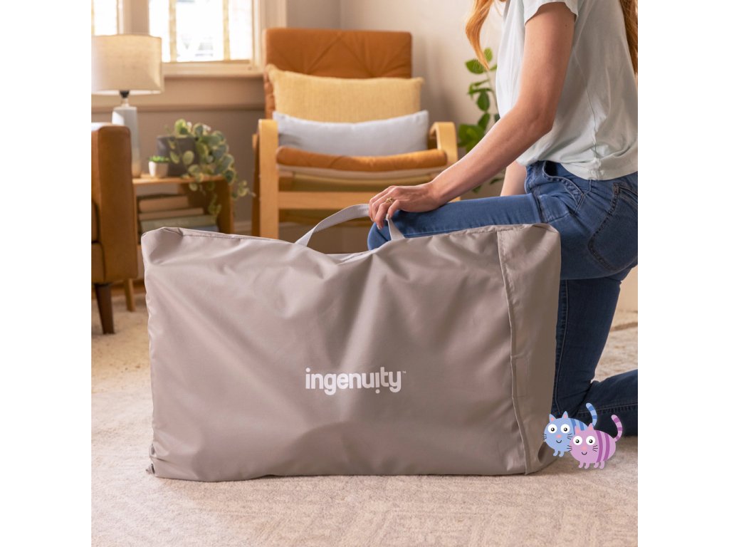 Moderní design s jemnými tkaninami a prošívaným středem skvěle zapadne do každého interiéru. Navíc lze snadno složit, uložit nebo přenést v přiložené cestové tašce.