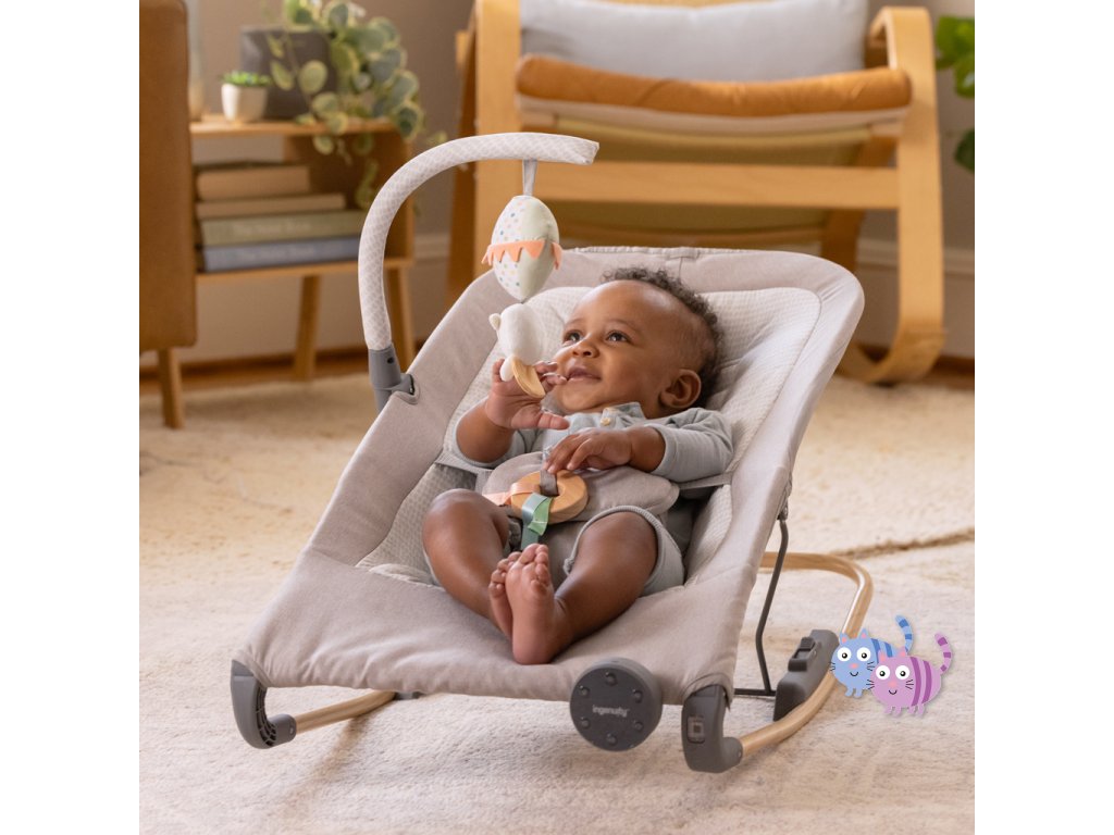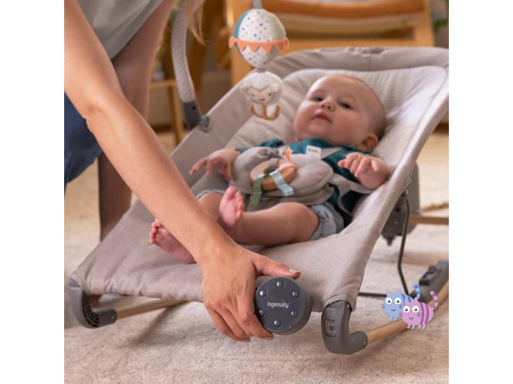 Ovládání je intuitivní díky technologii GentleTouch™, kterou hravě zvládnou rodiče, prarodiče i pečovatelé. Vaše dítě se může pobavit s odnímatelnou hrazdičkou, na které visí plyšový balón a dřevěný kroužek se štítky na zkoumání.