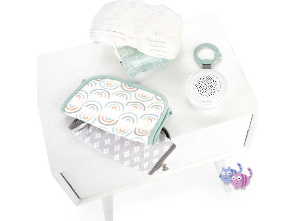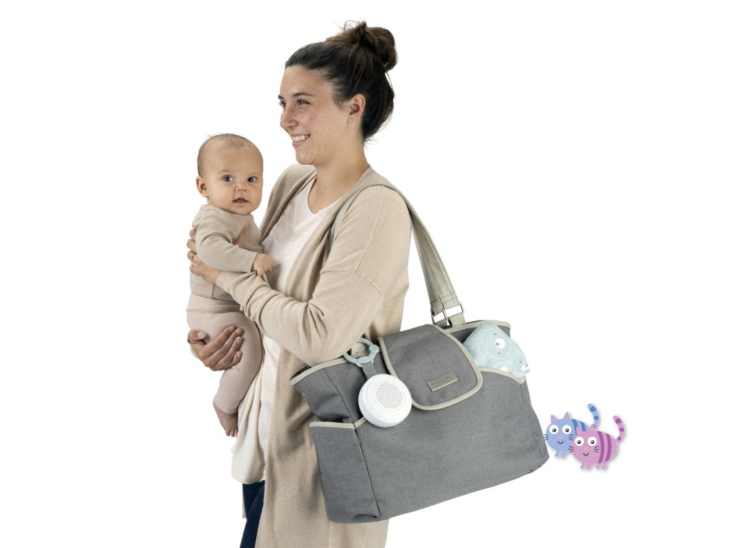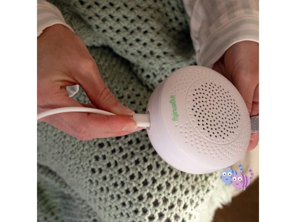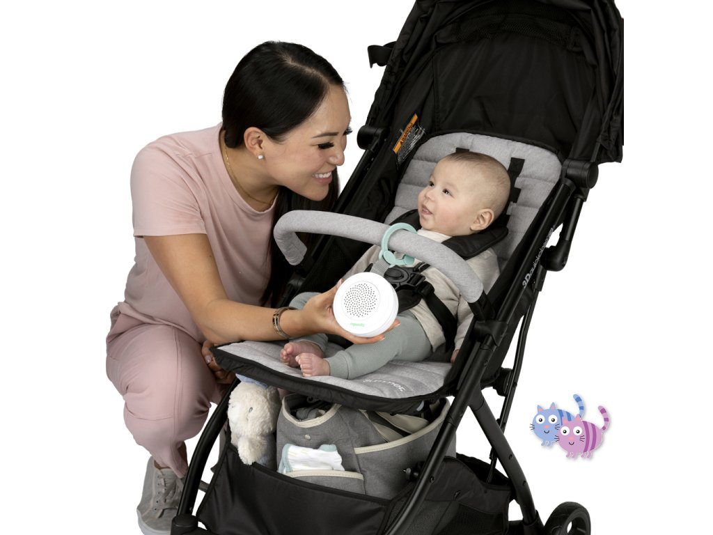Je vybaven časovačem automatického vypnutí, který umožňuje naplánovat uklidňující zvuky na 30, 60 nebo 90 minut. Díky kompaktnímu designu se snadno vejde na dětskou komodu, do tašky na pleny, na kočárek a podobně. Díky odnímatelnému článku jej můžete připnout k výbavě maminky, abyste dítě uklidnili nebo zabavili na cestách.