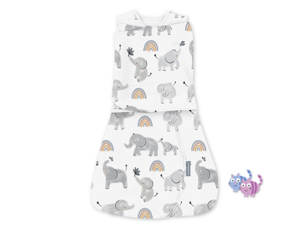 INGENUITY Zavinovačka bavlněná ulitka konvertibilní s volným rukávem TOG 1 SwaddleMe™ Happy Elephant