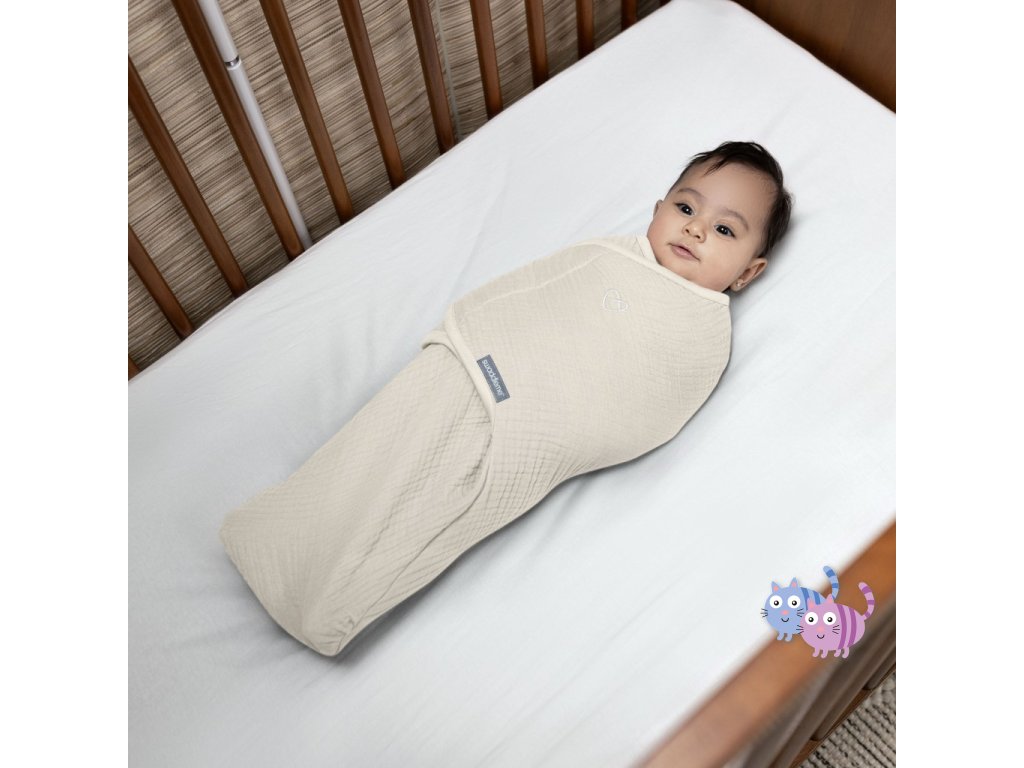 Bavlněná mušelínová zavinovačka SwaddleMe by Ingenuity – Original Muslin navržená pro klidný a bezpečný spánek miminka. Lehká a prodyšná zavinovačka o hodnotě 1.5 TOG poskytuje ideální klima během celého roku a vytváří útulný pocit dělohy, díky čemuž se miminko cítí v bezpečí. Je vhodná pro děti od 0 do 3 měsíců, o hmotnosti 3,2 – 6,4 kg a do výšky 66 cm. Jednoduchý tříkrokový systém zapínání pomocí nastavitelných křídel a měkkých suchých zipů zabraňuje uvolnění zavinovačky a snižuje reflex trhnutí, který často přerušuje spánek. Ergonomický design, bezpečný pro kyčle, poskytuje dostatek prostoru pro přirozený pohyb nohou. Vyrobená je ze 100% bavlněného mušelínu, je měkká, odolná a vhodná pro každodenní praní v pračce.