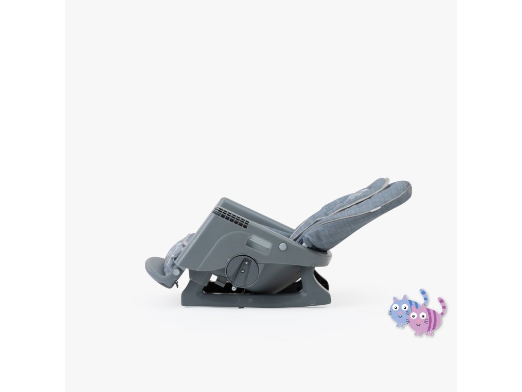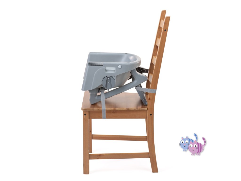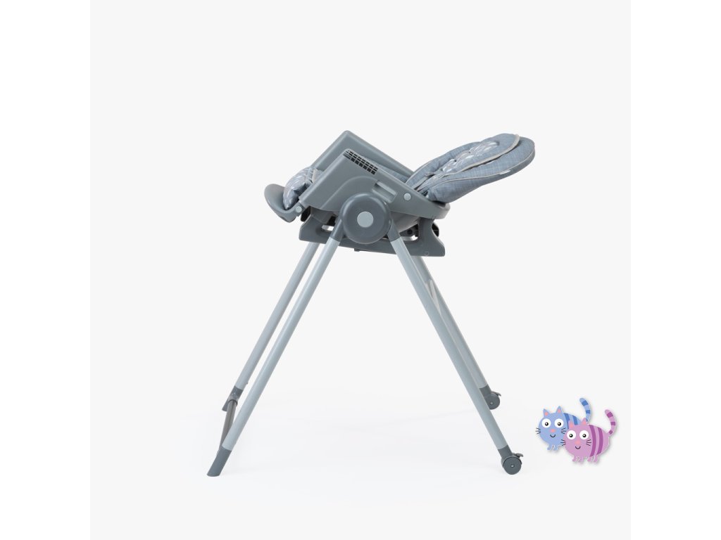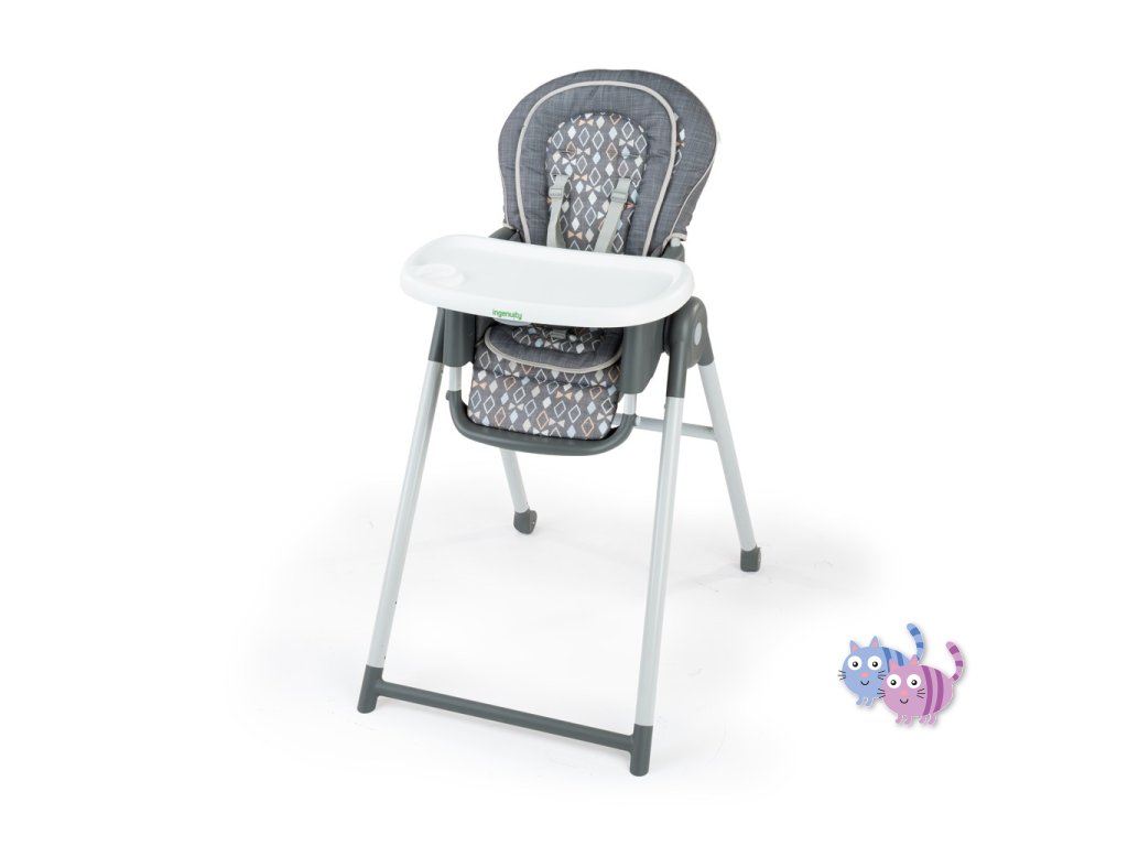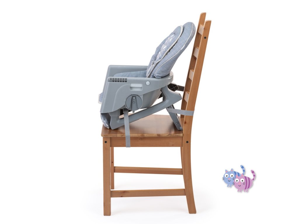 Ergonomický design židle pomáhá s posturální stabilitou, zatímco vícepolohová nastavitelná opěrka nohou zabraňuje visení nohou a nabízí větší pohodlí, aby se dítě mohlo soustředit na jídlo. Design sezení 90/90/90 udržuje nohy dítěte v optimální poloze v 90stupňovém úhlu, čímž podporuje pohodlí a správné držení těla. Sedací podložku a vložku lze prát v pračce.