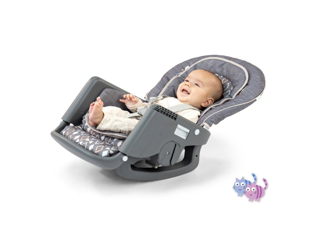 - 7 režimů použití: dětské lehátko a odnímatelné houpací lehátko jsou určeny pro novorozence do 6 měsíců; vysoká židle v plné velikosti s jídelním pultíkem (do 15 kg); dětská jídelní židle, která umožňuje dítěti připojit se k rodině u stolu bez pultíku; polstrovaná židle s připojením se na běžnou jídelní židli (do 23 kg); židle pro batole (do 23 kg); dětský podsedák (do 23kg).