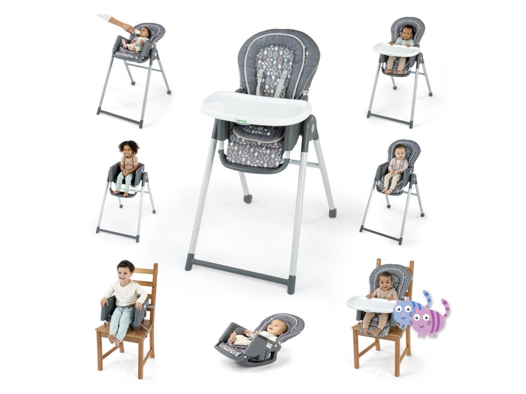 7 režimů židle představuje: dětské lehátko; odnímatelné houpací lehátko, vysoká židle v plné velikosti s jídelním pultíkem; dětská jídelní židle, která umožňuje dítěti připojit se k rodině u stolu bez pultíku; polstrovaná židle s připojením se na běžnou jídelní židli; židle pro batole; dětský podsedák, který lze připevnit na běžnou jídelní židli. První 2 režimy se starají o raná stadia miminka (0-6 měsíců): dětské lehátko napodobuje držení mámy při krmení z láhve, zatímco vůbec první odnímatelné houpací lehátko Ingenuity udržuje dítě v klidu.
