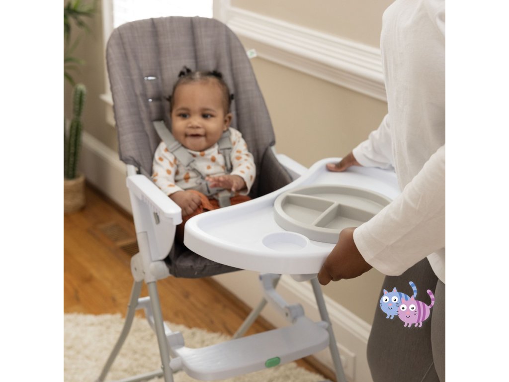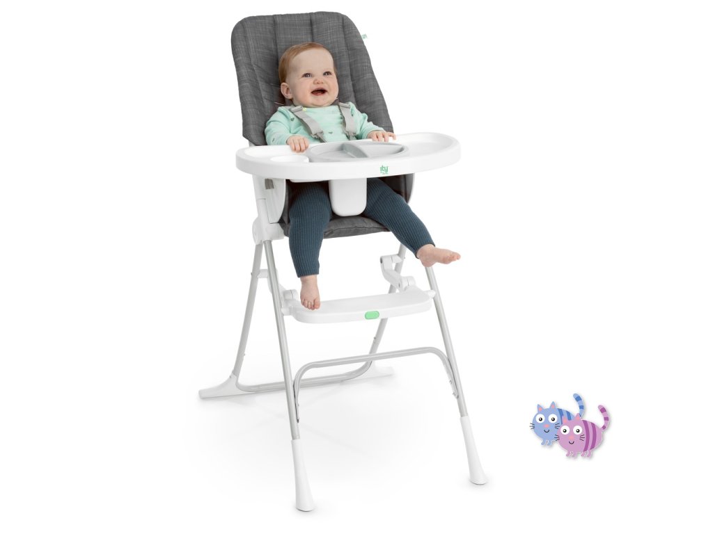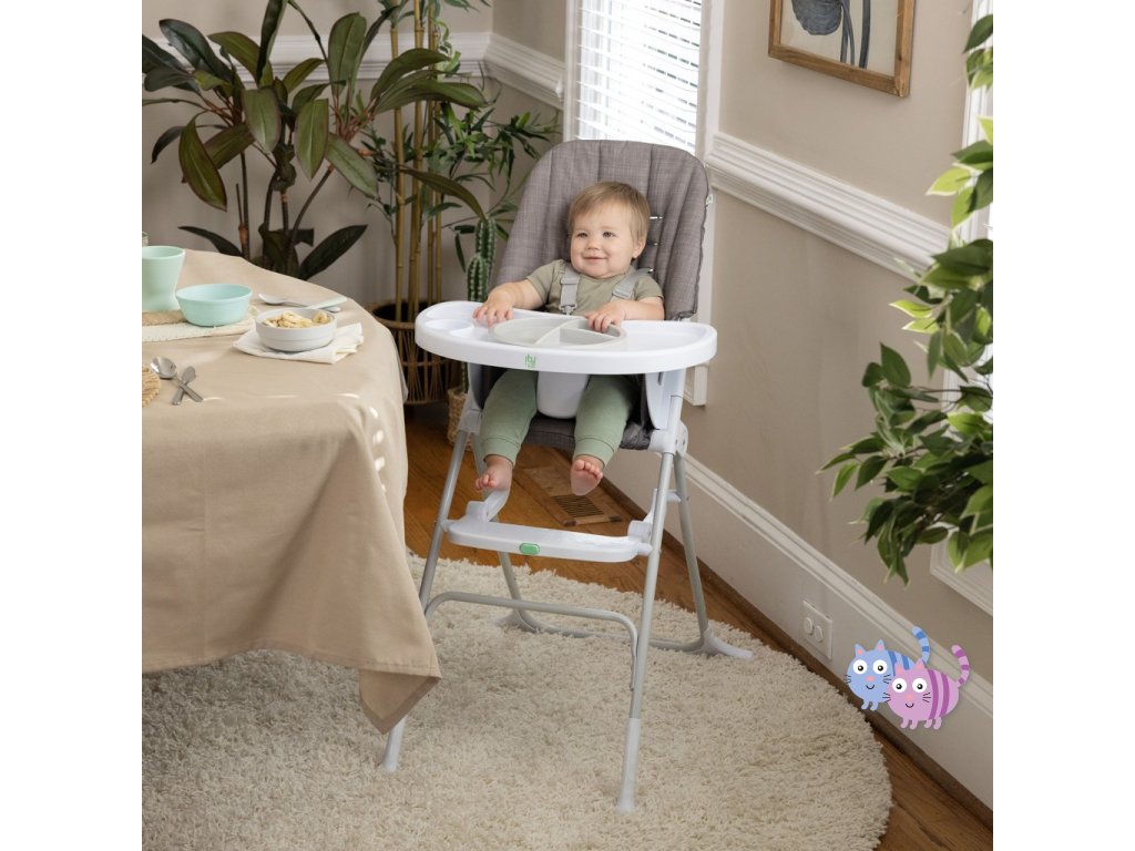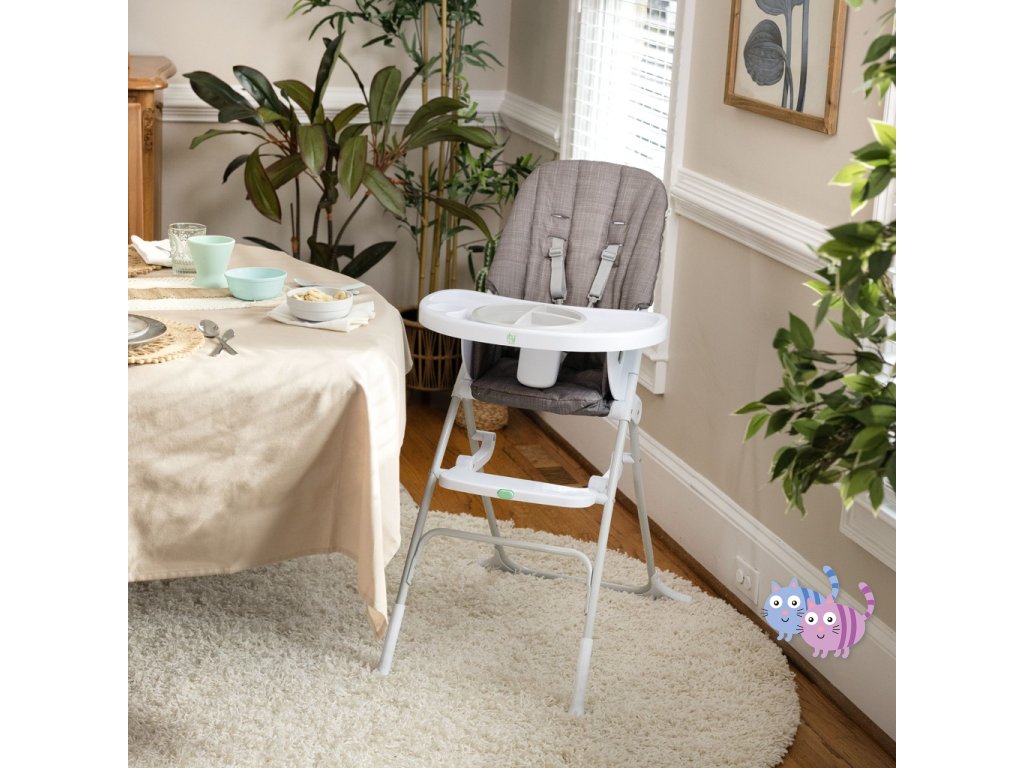 Ušetřete místo ve svém domě a dopřejte dítěti vynikající zážitek z jídla s kompaktní skládací vysokou židlí ity by Ingenuity Sun Valley. Lehká, moderní vysoká židle má kompaktní design pro snadné skladování a přenosnost. Tato štíhlá židle se dá složit naplocho a když je složená, sama stojí.