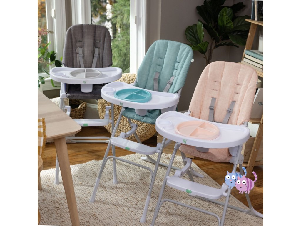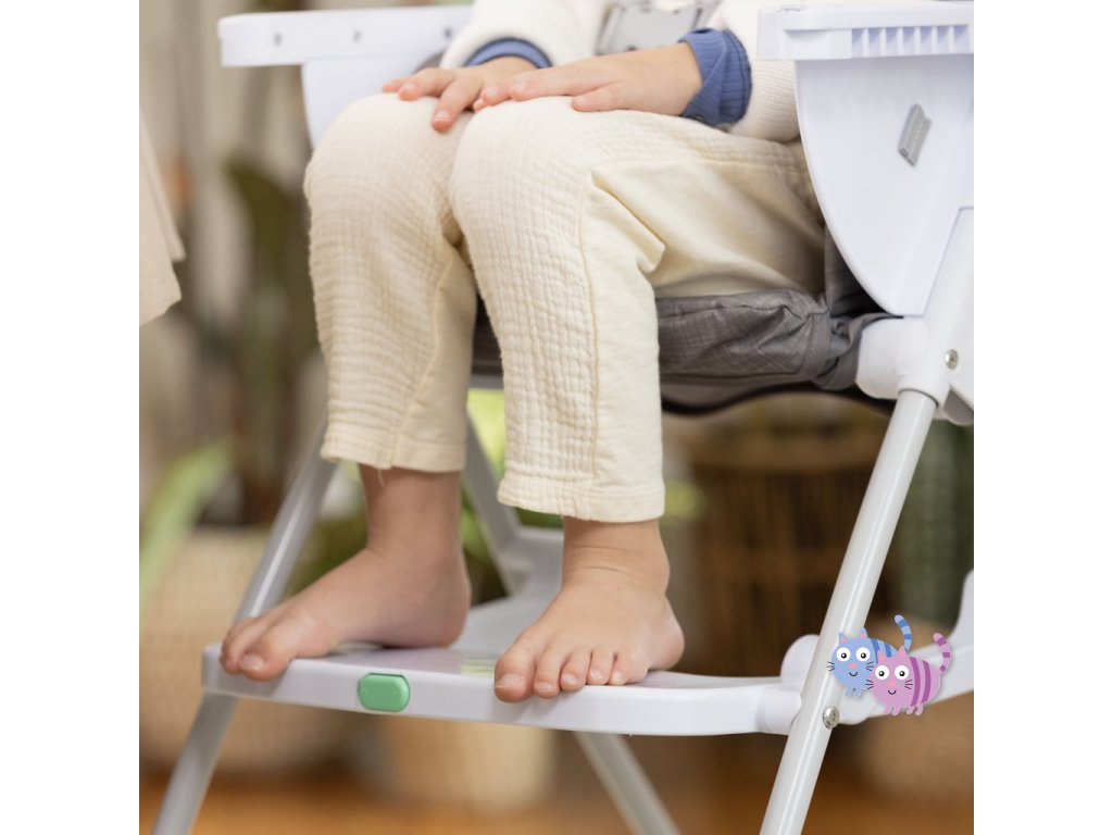 - Lehký design této dětské vysoké židle umožňuje jednoduchou mobilitu po domě. Štíhlá židle ve složeném stavu sama stojí a pro uskladnění se složí naplocho.