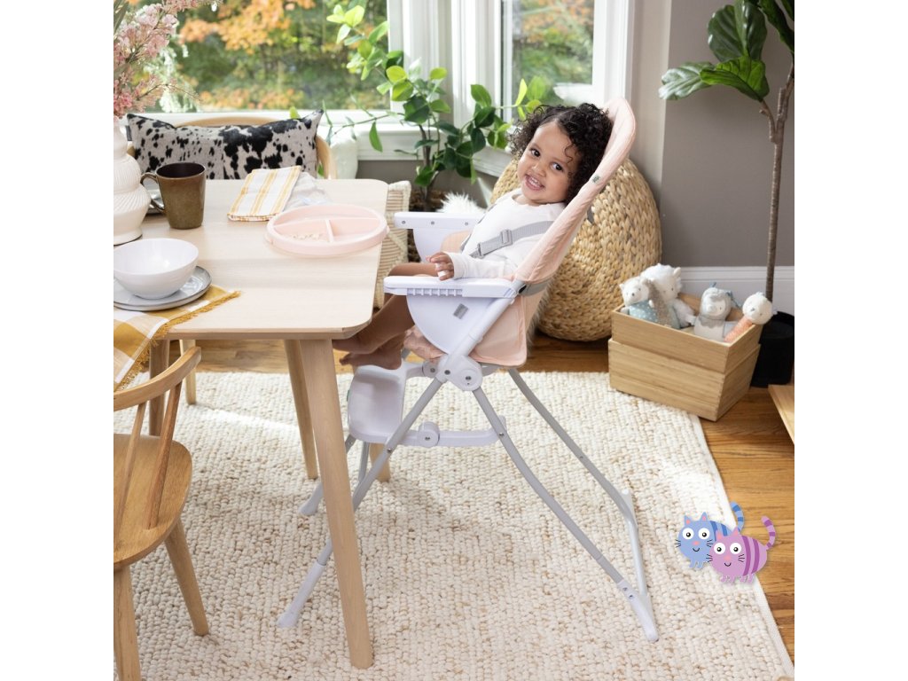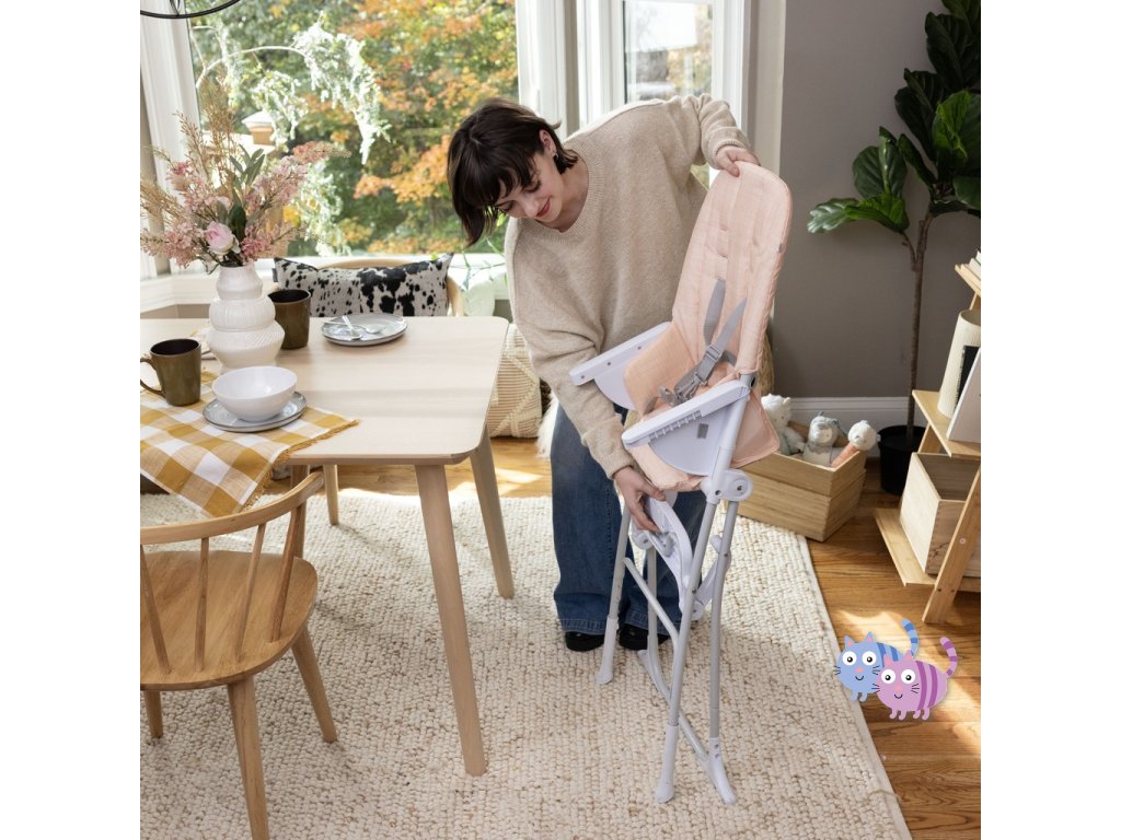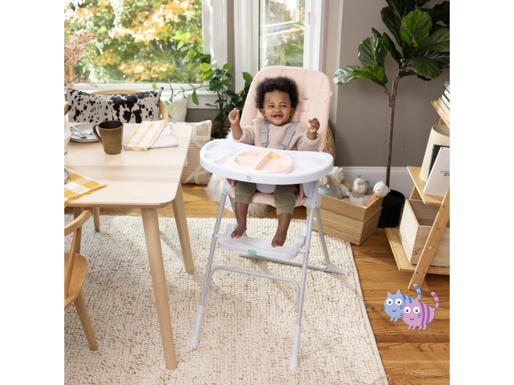 - Lehký design této dětské vysoké židle umožňuje jednoduchou mobilitu po domě. Štíhlá židle ve složeném stavu sama stojí a pro uskladnění se složí naplocho.