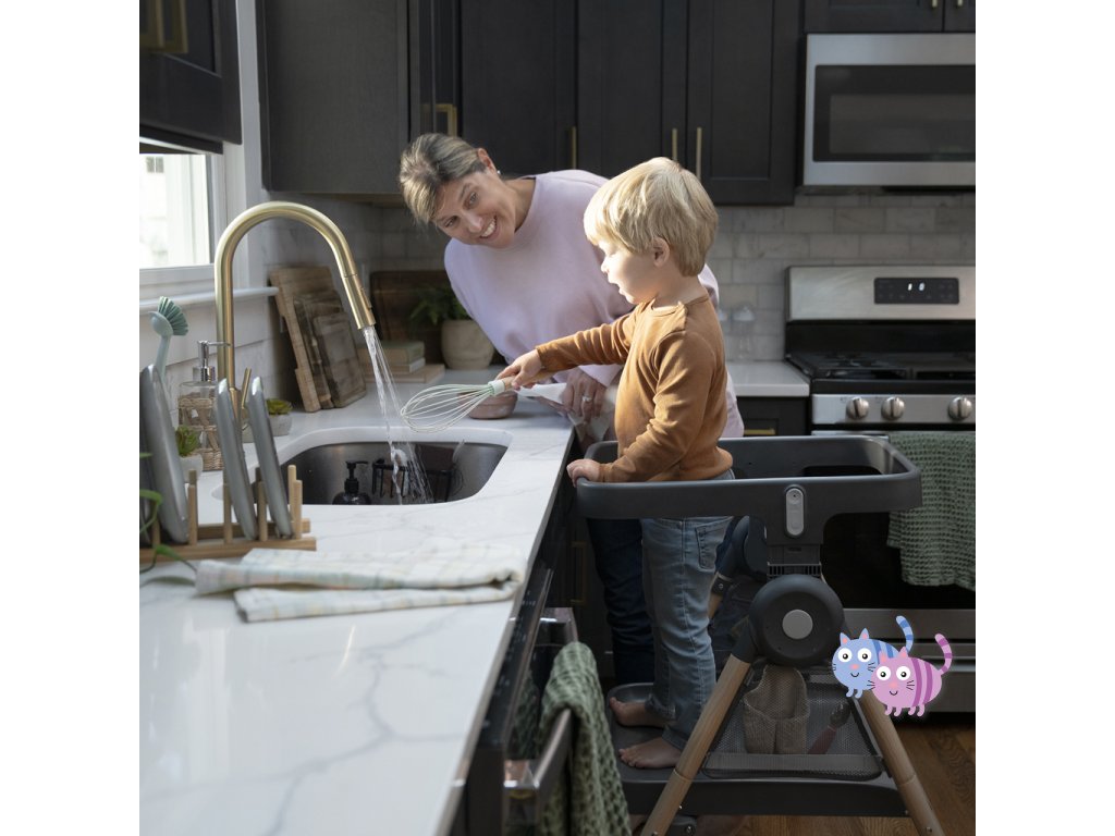 Od hladového novorozence po tvůrčí batole – a také jako malý pomocník v kuchyni – toto je ideální řešení typu „vše v jednom“ pro rodiče, kteří chtějí šetřit prostor a zároveň dát dětem všechny možnosti k jídlu i hraní.