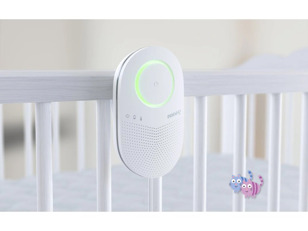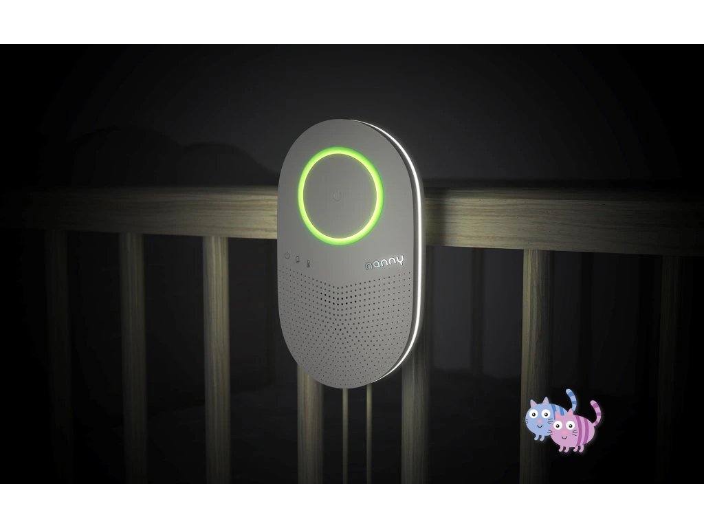 Nanny je napájena ze 2 tužkových baterií, má noční lampičku pro rychlou vizuální kontrolu miminka v noci a intenzitu jasu automaticky přizpůsobuje okolnímu prostředí. Kontrolky v noci svítí s menší intenzitou pro nerušený spánek vás i vašeho miminka.