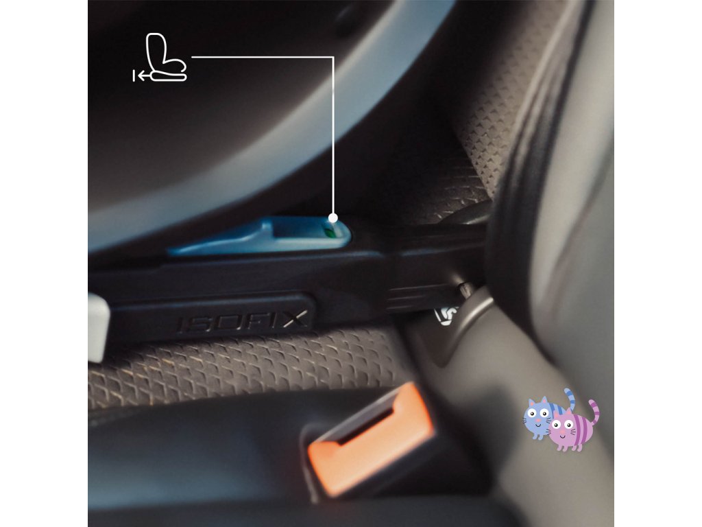 Montáž probíhá přes ISOFIX, který je rychlý a bezpečný. Sedačka je vybavena také opěrnou nohou (11 úrovní) a 4 indikátory správné instalace.