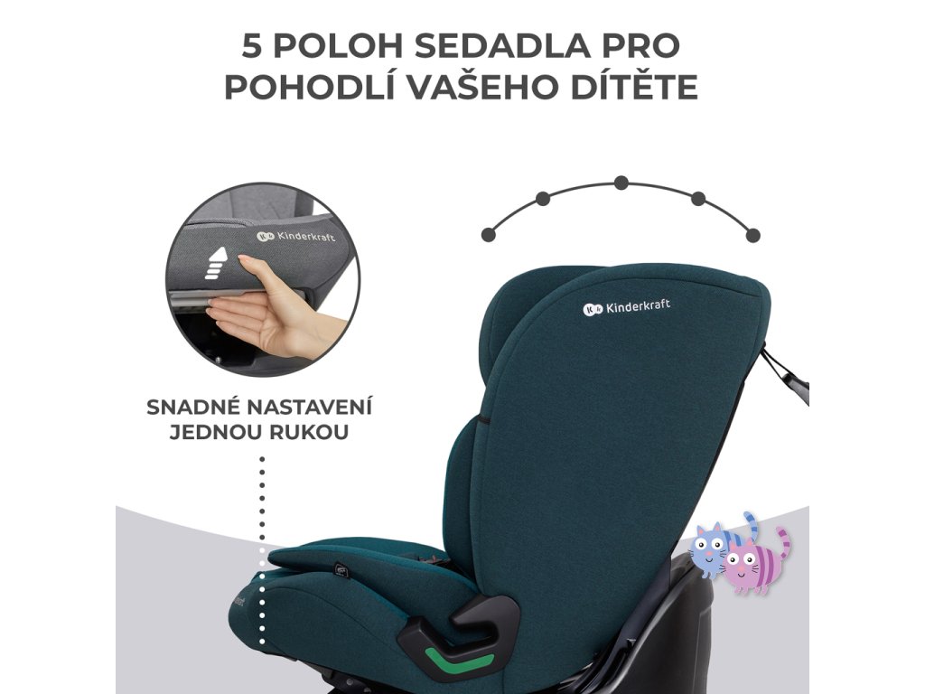 Autosedačka je integrována s podnoží a umožňuje vám nastavit úhel sklonu vůči pohovce, což zvládnete udělat jednou rukou a to po celou dobu jejího používání. Autosedačku si jednoduše nastavíte do jedné z 5 poloh. To ovlivňuje nejen pohodlí při cestování, ale také bezpečnost dítěte.