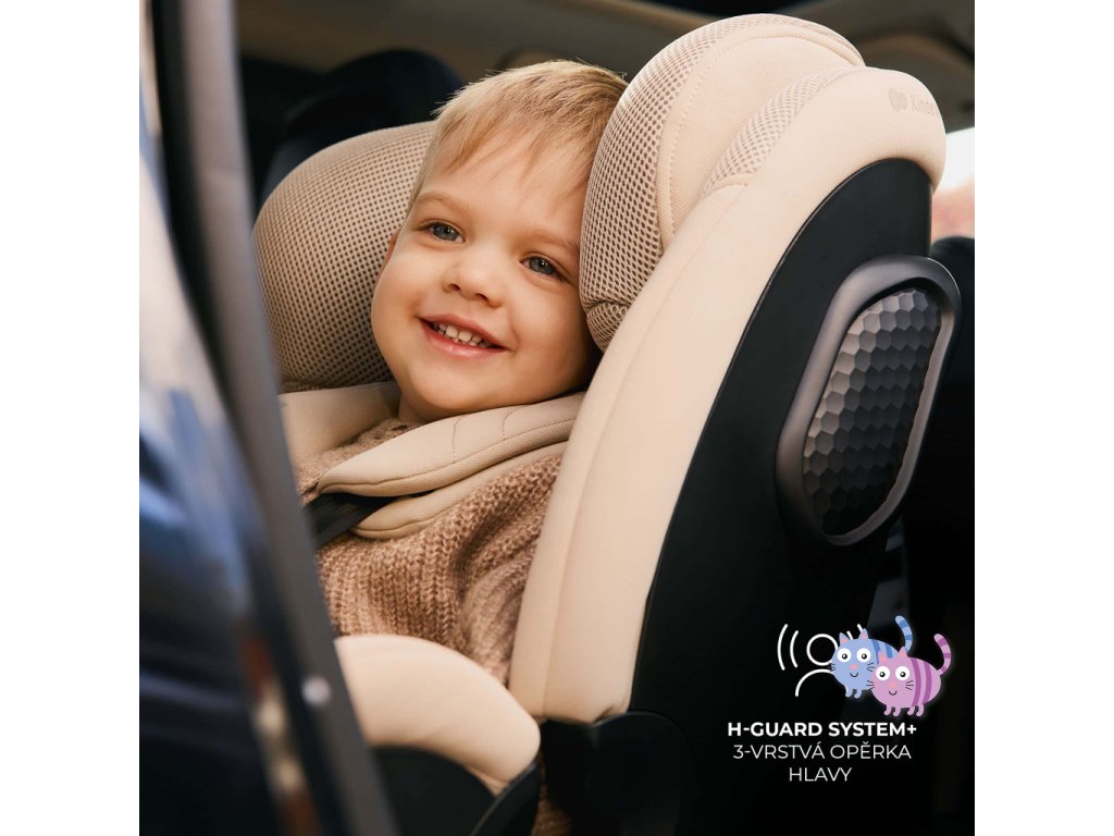 Opěrka hlavy H-GUARD+ s vícevrstvou konstrukcí a paměťovou pěnou poskytuje obousměrnou ochranu. Na jedné straně se perfektně přizpůsobuje, zajišťuje pohodlí při používání, na druhé straně chrání hlavu a krk dítěte absorbováním energie v případě kolize.