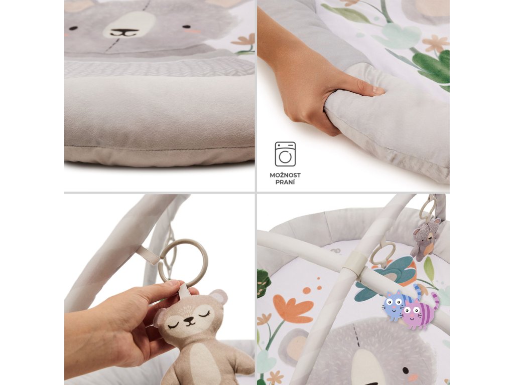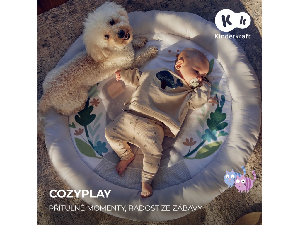 Vzdělávací podložka COZYPLAY spojuje estetiku a funkčnost. Navržena evropským umělcem, je krásným doplňkem do každého interiéru. Podporuje také vývoj vašeho dítěte díky aktivitám a hračkám, které lze pověsit v různých konfiguracích na dvě měkké obloukové hrazdičky. S COZYPLAY se každodenní péče o vaše děťátko stává jednodušší!
